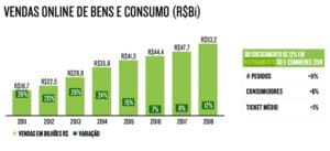 A previsão de faturamento do setor em 2020 seria de R$ 74 bilhões contra R$ 61.9 bilhões do ano anterior. Basta comparar as vendas do comércio eletrônico ao PIB brasileiro, tivemos um crescimento exponencial. Fora da curva da economia brasileira.
