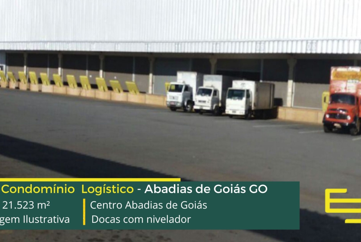 - Aluguel de galpão logístico em Abadia de Goiás GO com docas para carga e descarga