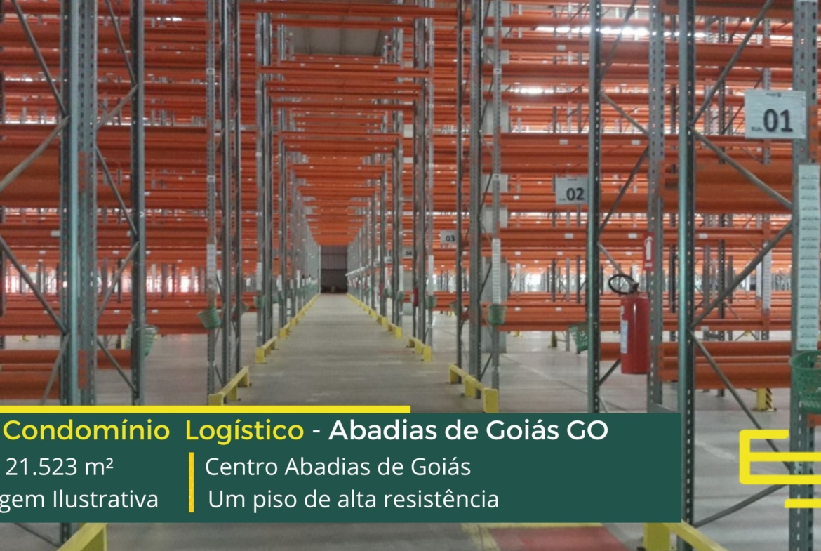 Aluguel de galpão em condomínio logístico na cidade de Abadia de Goiás com completa estrutura de segurança, com portaria, perímetro cercado, além de amplo pátio de manobras, estacionamento e as margens da Rodovia desenvolvido para operações logísticas de distribuição e sobretudo transportes, que possuem as seguintes comodidades: