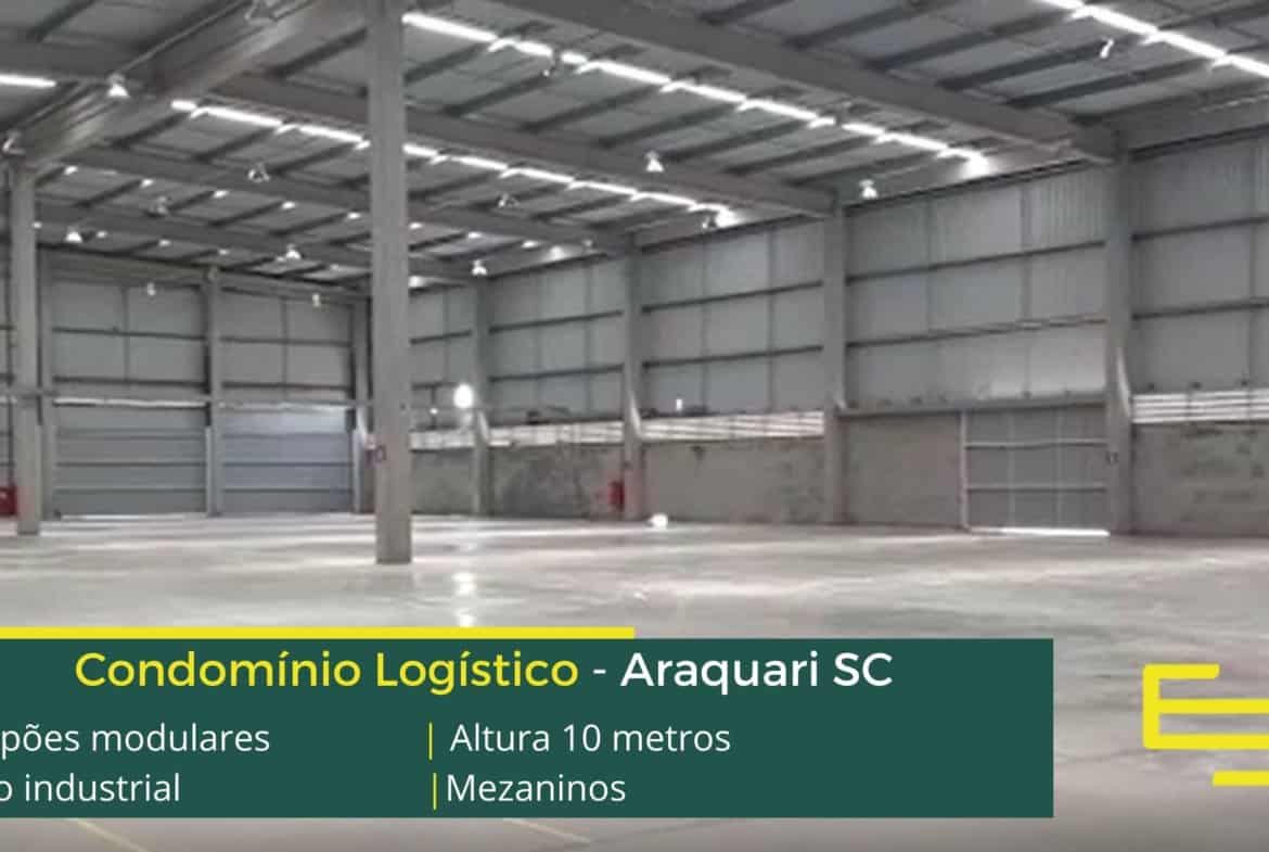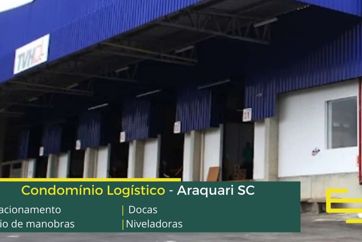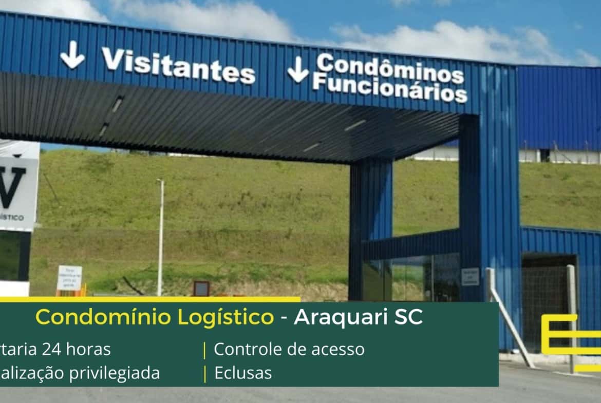 Aluguel de galpão em Araquari SC, em condomínio logístico . com localização estratégica, a apenas 8 km do Trevo da Rodovia Senador Luiz Henrique da Silveira. Os galpões contam com docas, pé direito livre de 12 metros e piso com resistência para até 4 toneladas por m2.