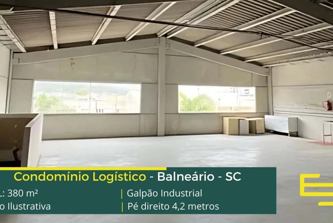Aluguel de Galpão em Balneário Camboriú – que é ideal para logística, transportes e além disso, distribuição, possui diferencial em sua localização, o galpão se localiza a 1,0 km da Rodovia Governador Mário Covas, este galpão para locação possuí área locável total de 380 m².