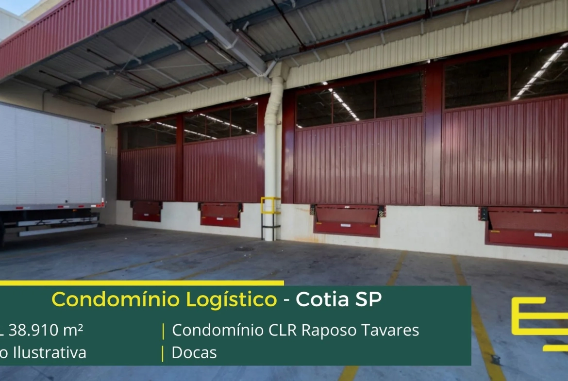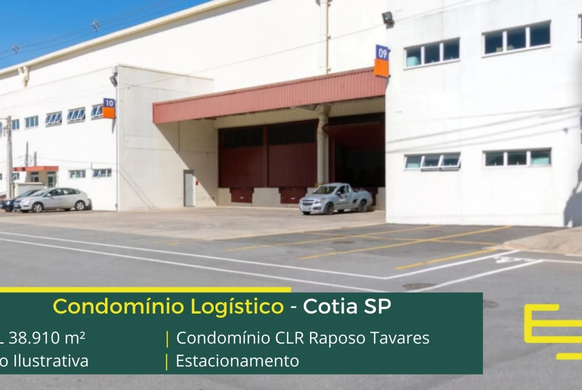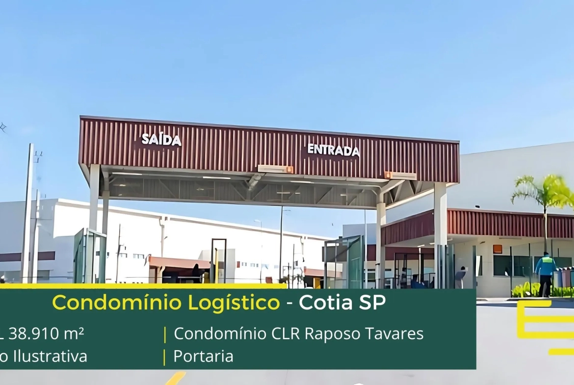 Aluguel de galpão logístico em Cotia SP, em condomínio, que possui portaria blindada com controle de acesso monitorado, sistema de segurança com CFTV e além disso, galpões flexíveis com docas.