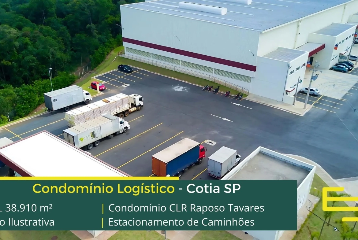- Galpão para alugar em Cotia com estacionamento para caminhões;