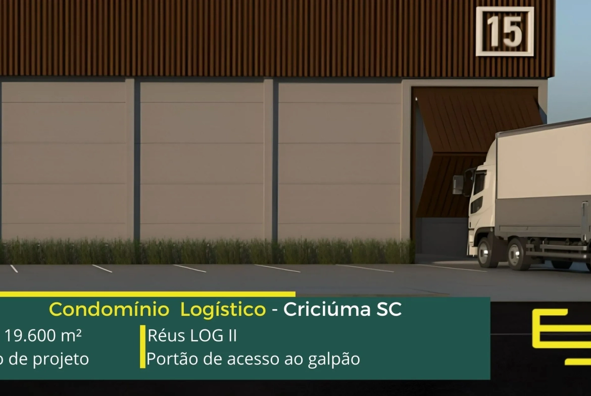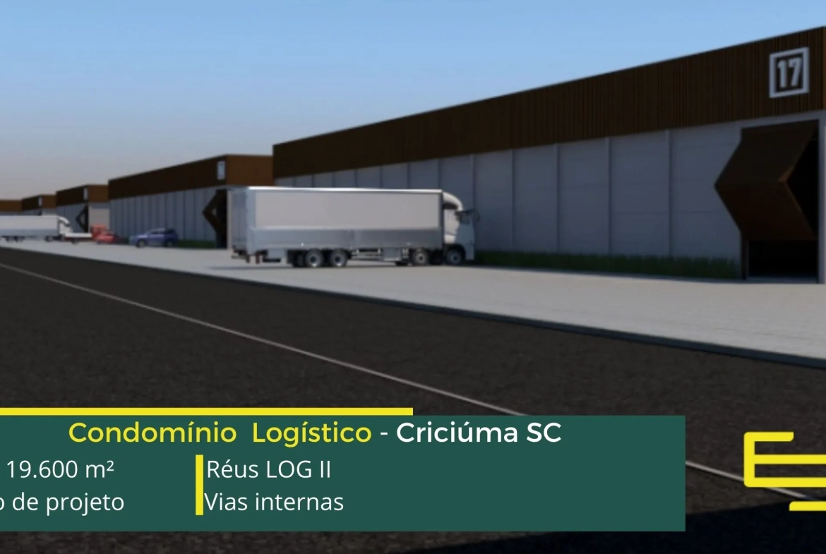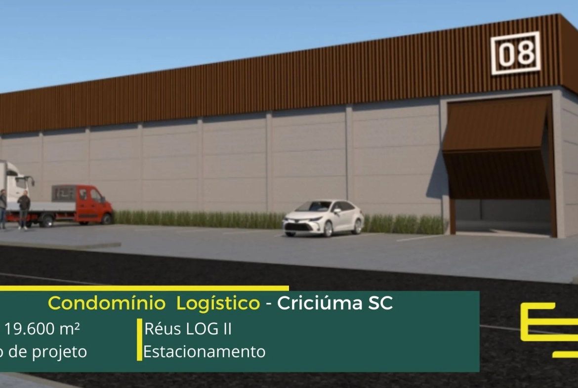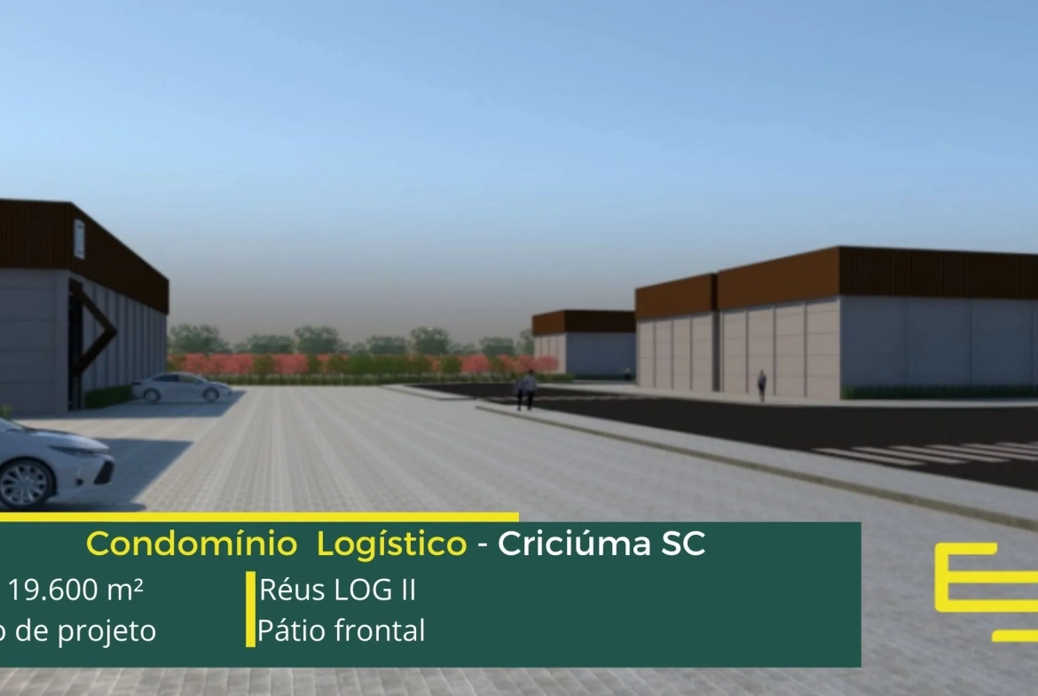 Aluguel de galpão em Criciúma em condomínio logístico com localização privilegiada, perto da marginal da BR-101 e com fácil acesso a Rod. Aristides Bolan, o condomínio Réus log II conta com área total locável de 19.600 m², e permite alugar galpão a partir de 700 m²;