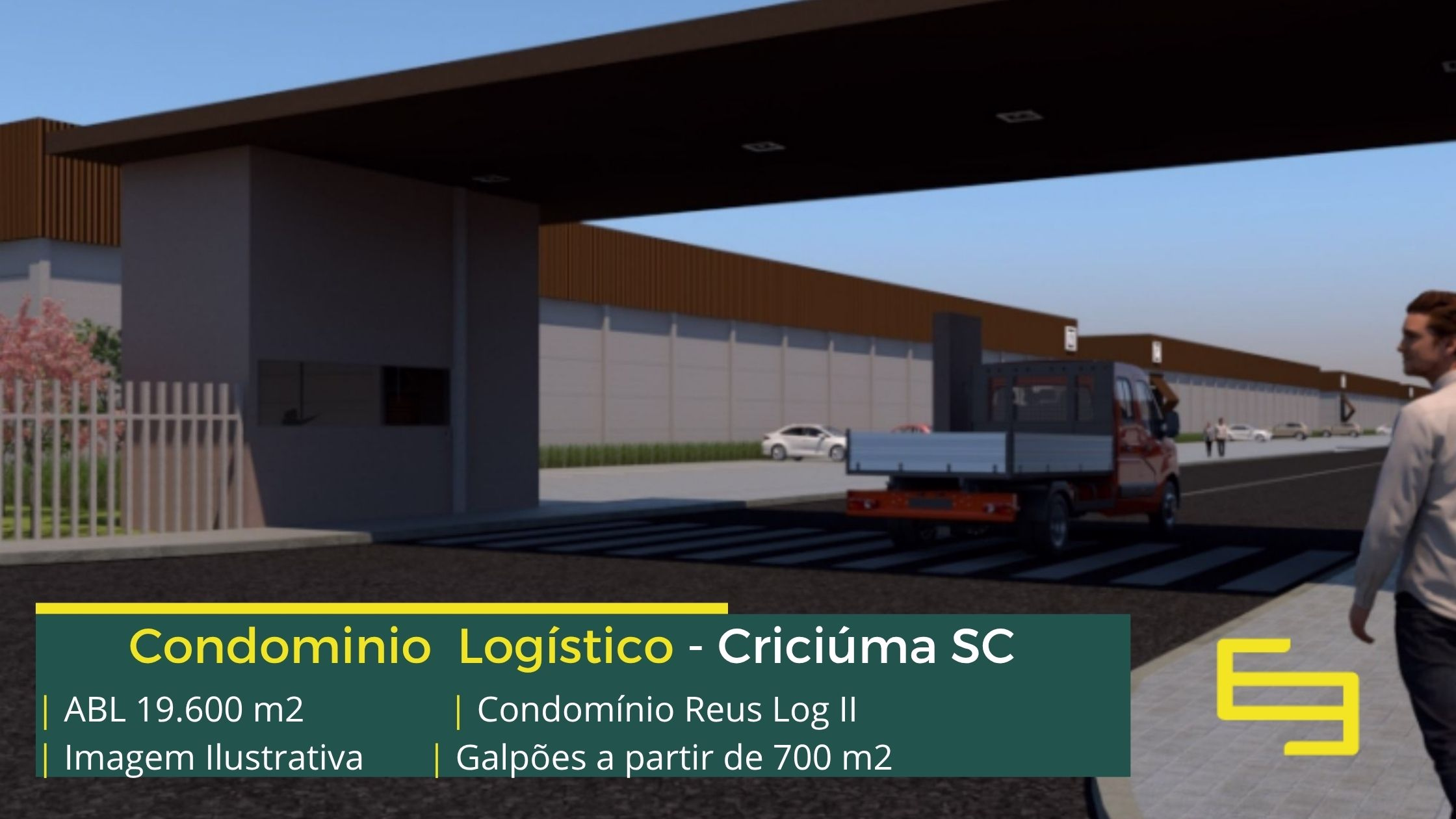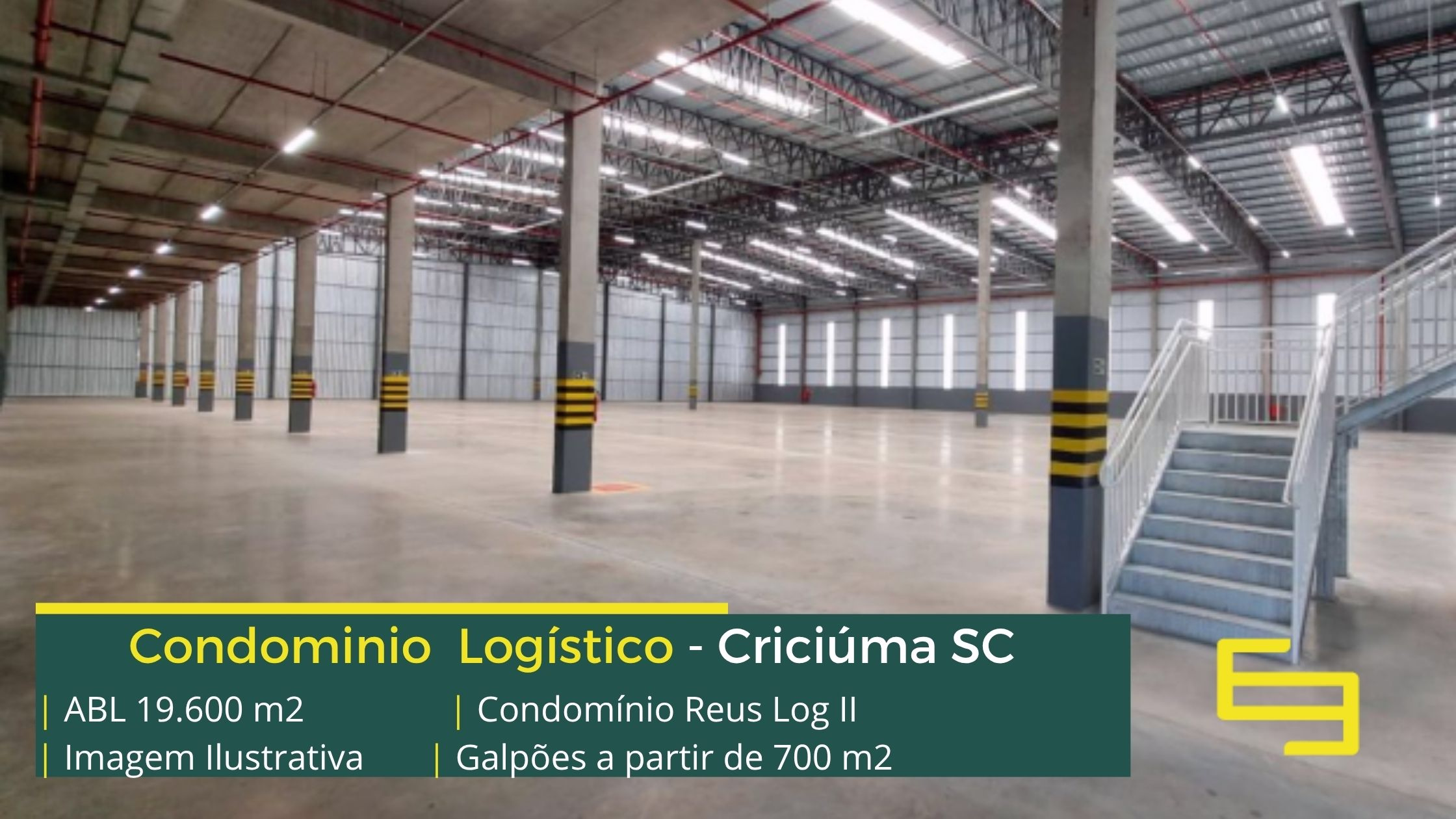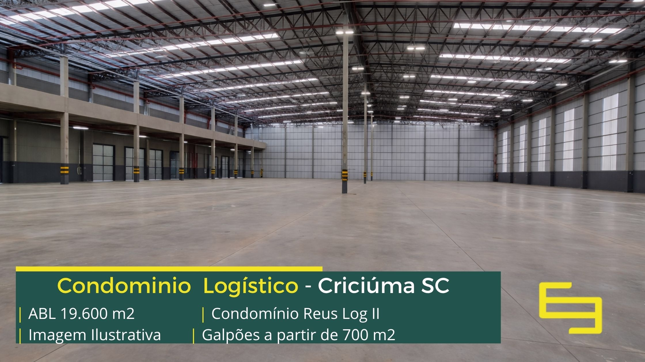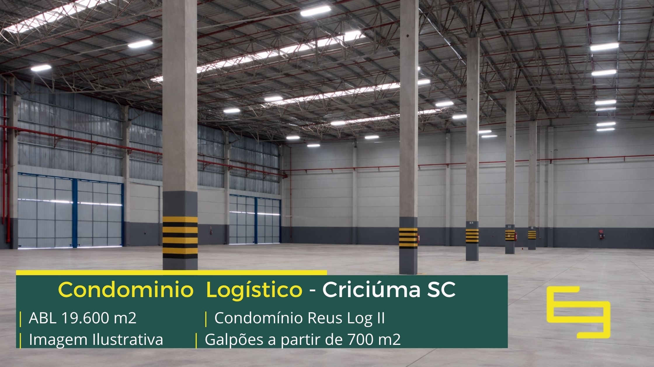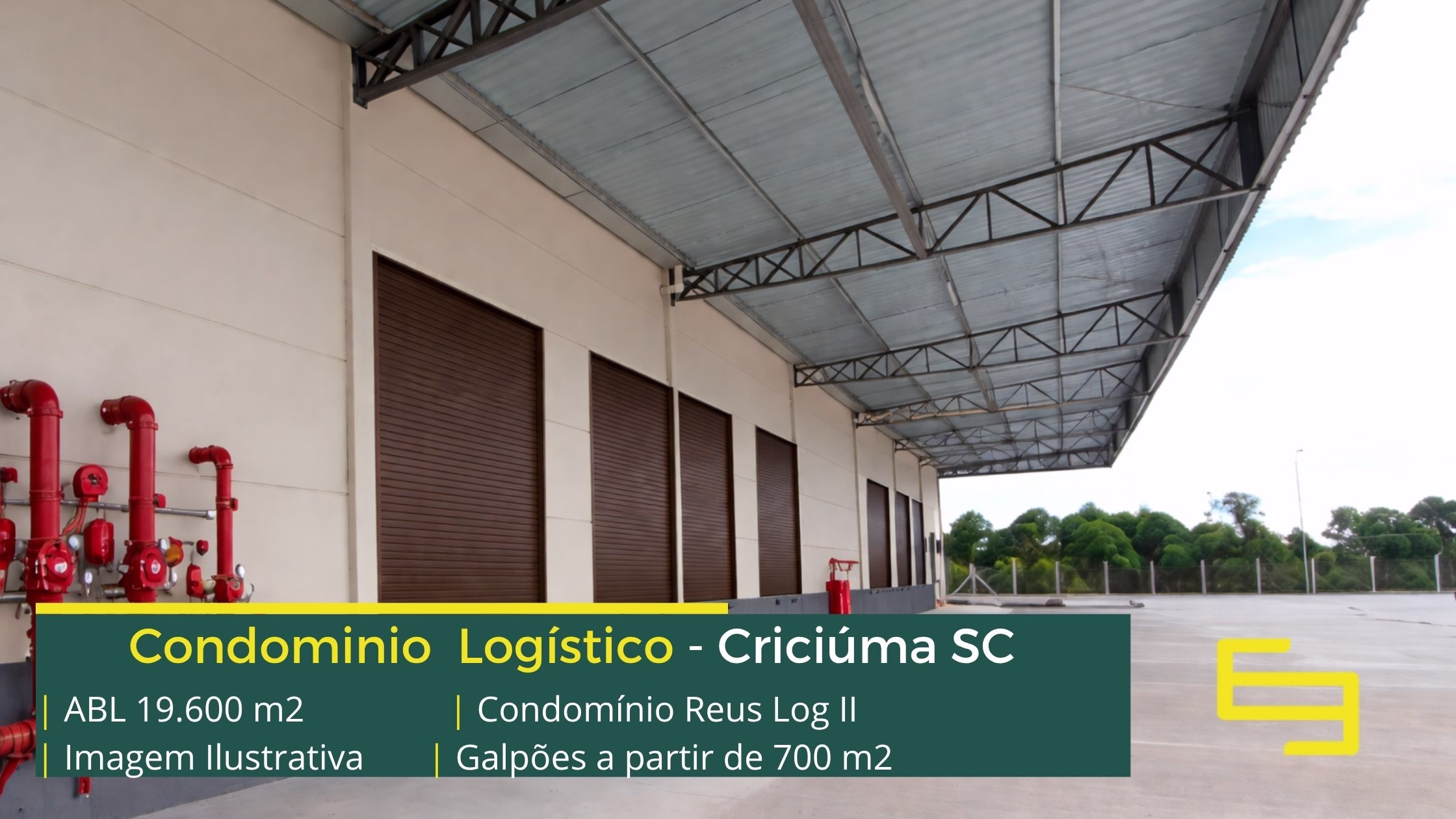 Aluguel de galpão em Criciúma em condomínio logístico com localização privilegiada, perto da marginal da BR-101 e com fácil acesso a Rodovia Aristides Bolan, o condomínio Réus log II conta com área total locável de 19.600 m², e permite alugar galpões em Brusque a partir de 700 m²;