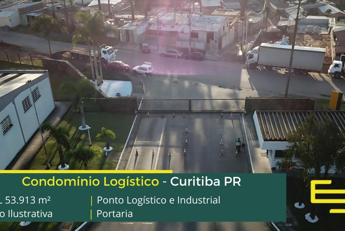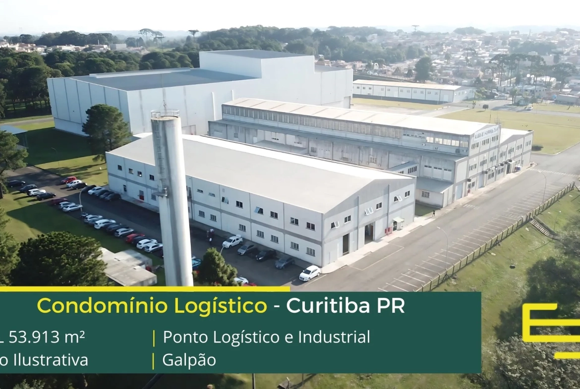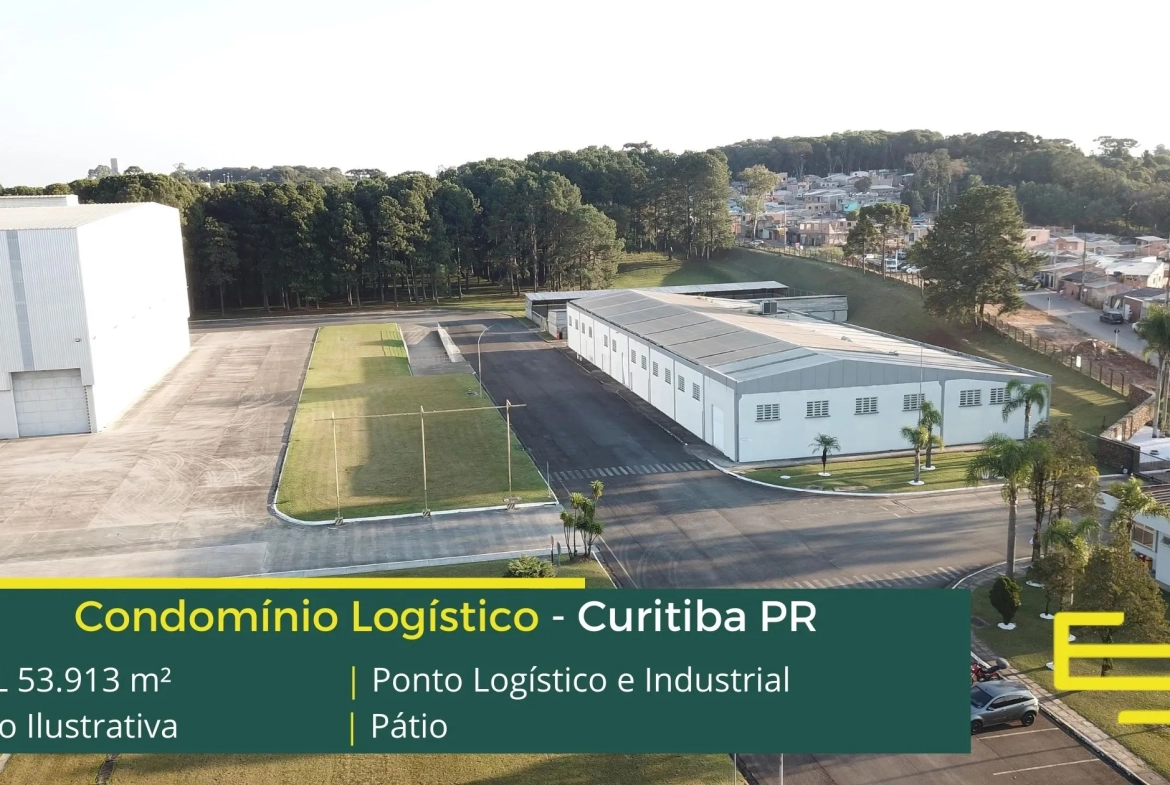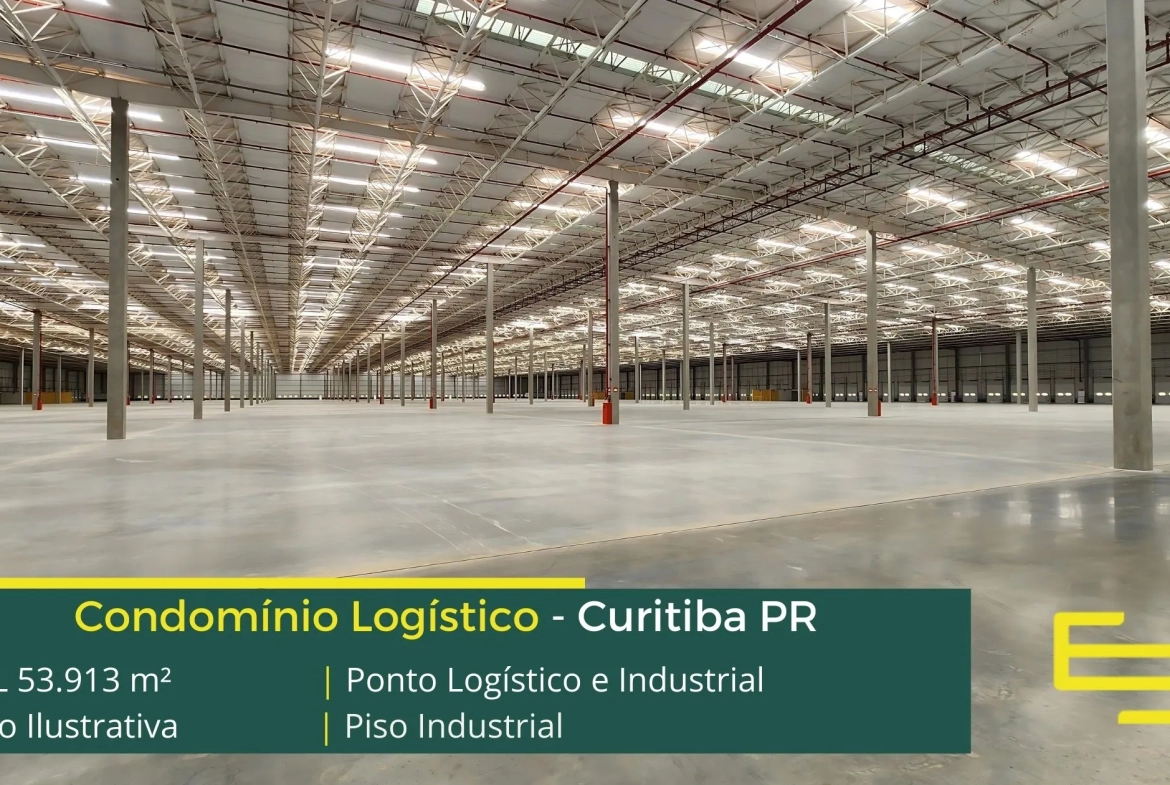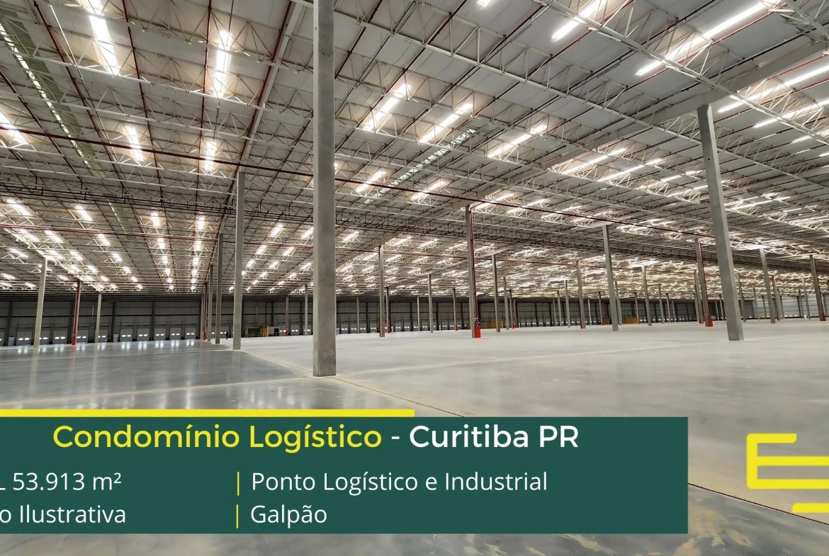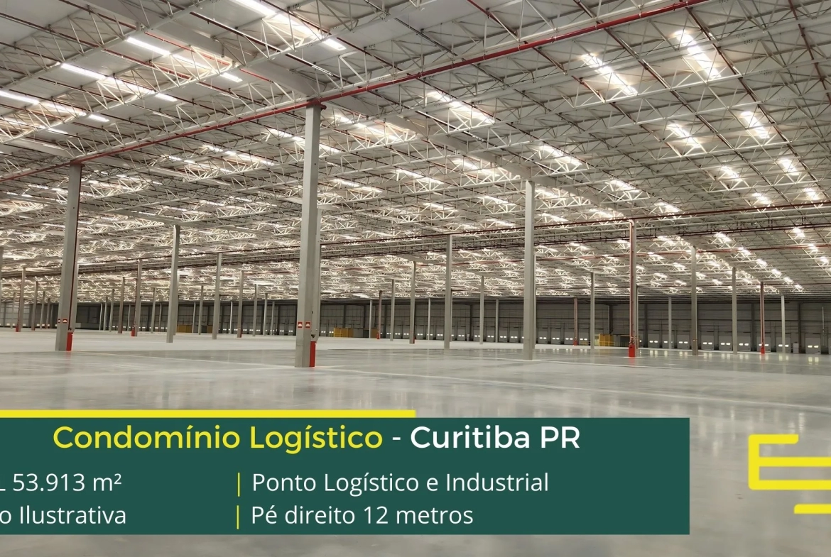 Aluguel de galpão em condomínio logístico na cidade de Curitiba que permite atividades de transportes, distribuição e industrial, inclusive com possibilidade de pontes rolantes.