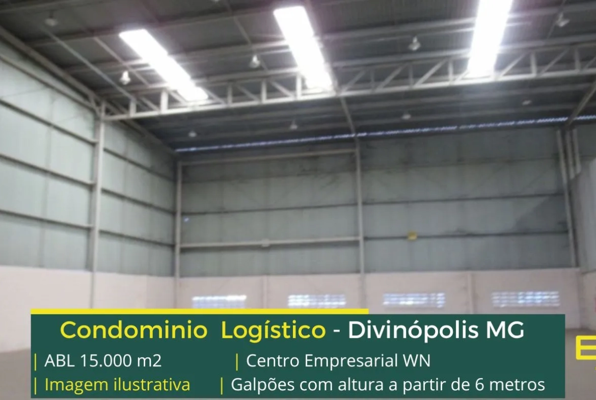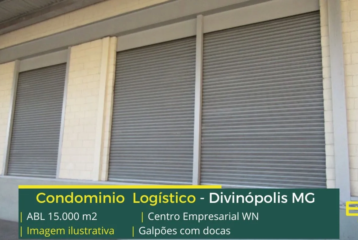 Galpão para alugar na cidade de Divinópolis MG com localização privilegiada, em condomínio logístico que conta com portaria e vigilância, pátio pavimentado, e galpões com docas e além disso, com entrada para caminhões.