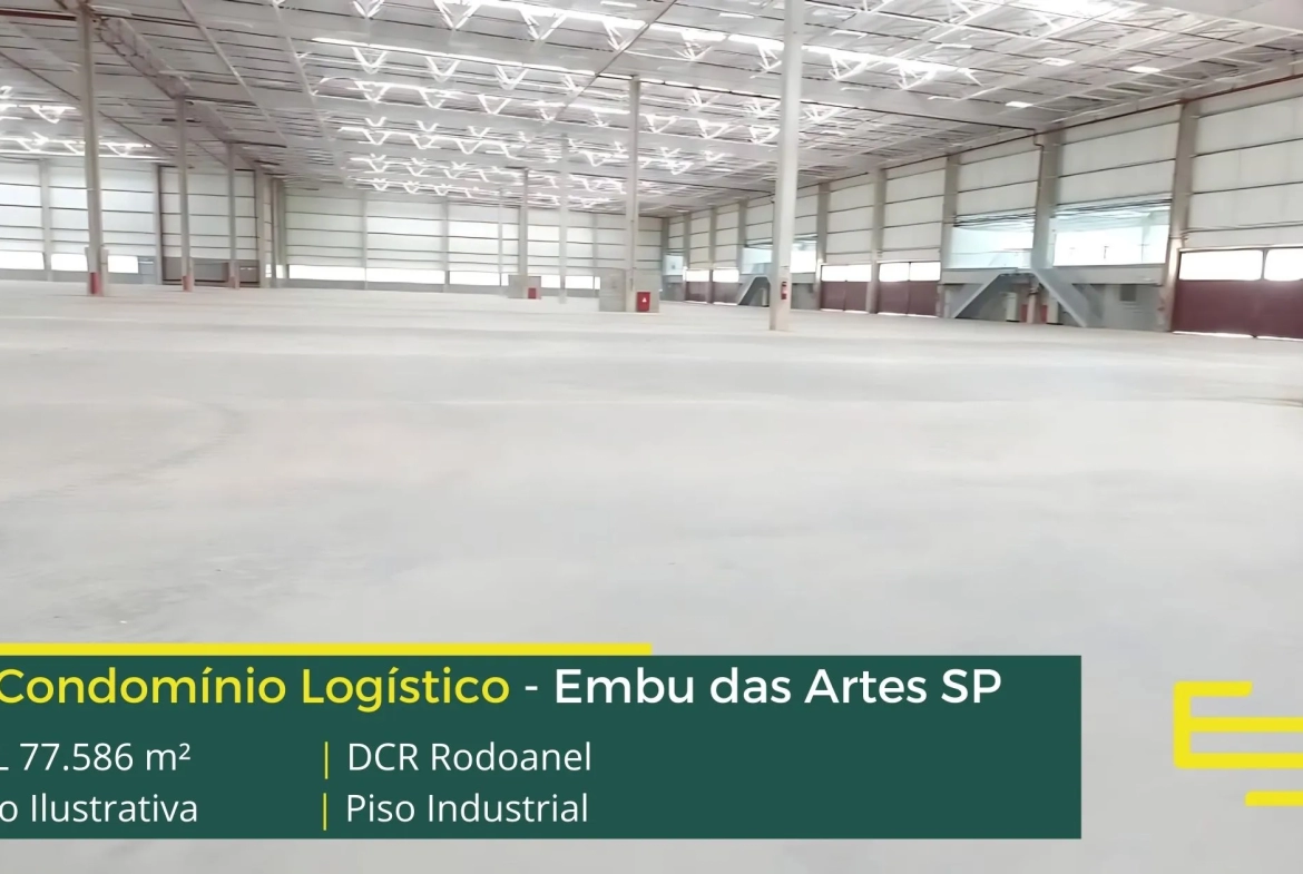 - Galpões em Embu das Artes com piso industrial e polido e com resistência de 6 T/m²