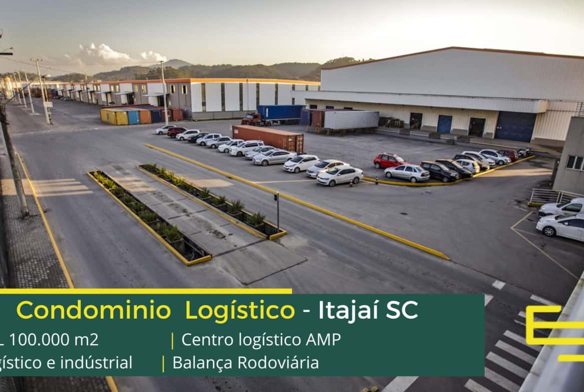Aluguel de Galpão em Itajaí SC em condomínio logístico as margens da Rodovia Antônio Goedert, a 500 metros da BR-101, no trevo que conecta Itajaí a Brusque. É uma localização privilegiada, com fácil acesso aos portos de Itajaí e Navegantes . O condomínio Centro Logístico AMP conta com área total locável de 128.841 m² e permite aluguel de galpões em Itajaí SC a partir de 1.500 m²;