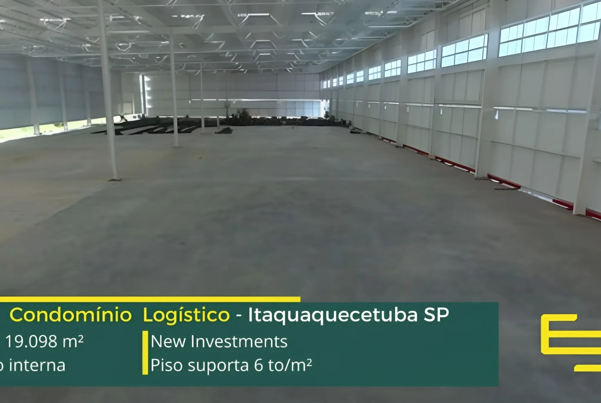 Aluguel de galpão em Itaquaquecetuba – O condomínio New Investment esta localizado a 2,6 km da Rodoviária Ayrton Senna é ideal para empresas que buscam expandir suas operações de armazenamento o galpão possui 19.098 m² .