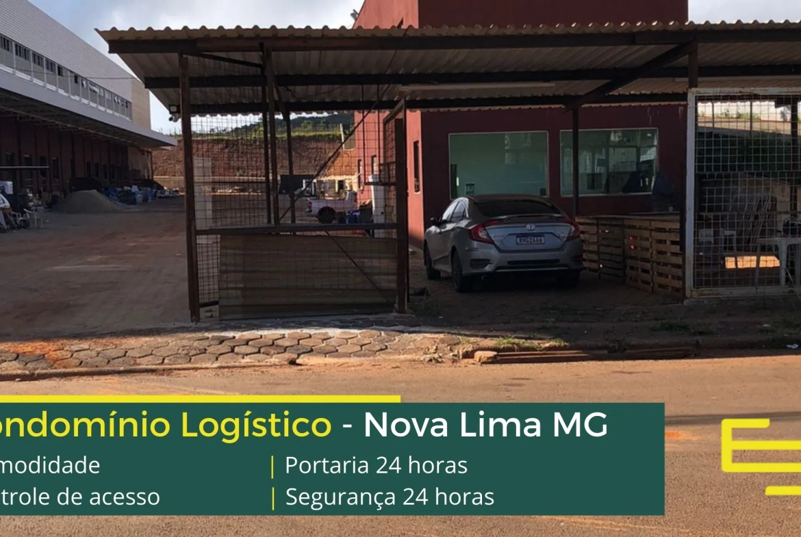 O condomínio de galpões para locação em Nova Lima, possui portaria, além disso, segurança 24 horas com controle informatizado de acesso.