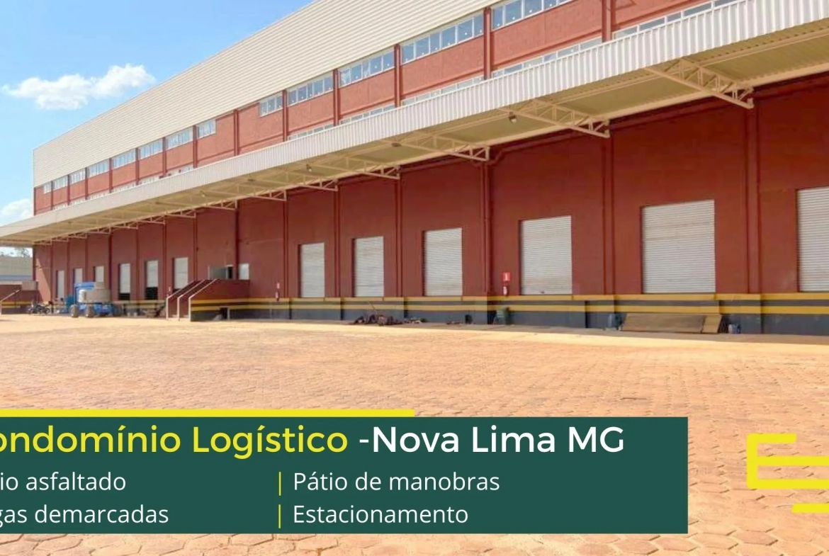 Condomínio logístico de aluguel de galpões em Nova Lima conta com amplo estacionamento interno e externo além disso: