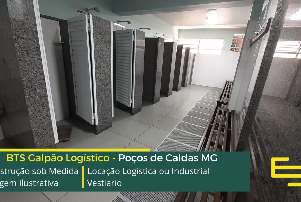 Galpão para alugar em Poços de Caldas MG, desenvolvido especificamente para o locatário, com padrão AAA de construção e além disso, com completa estrutura de segurança, e comodidades como vestiários e refeitório.