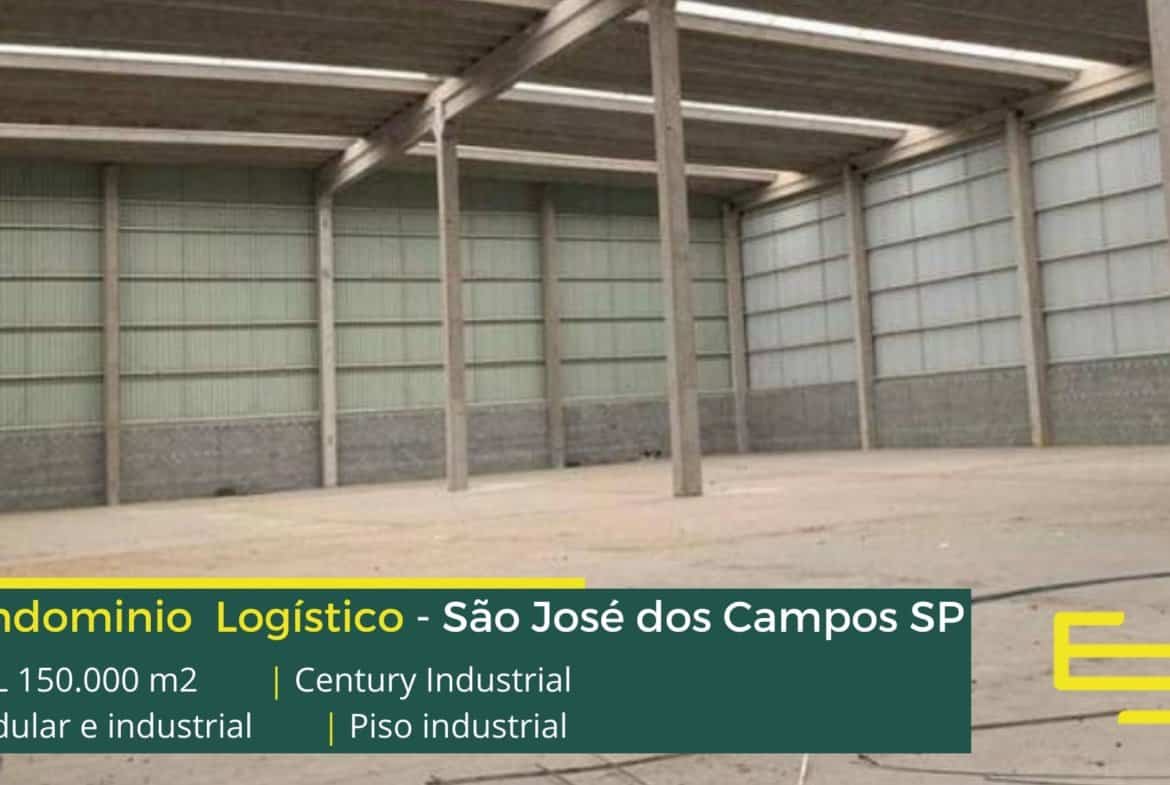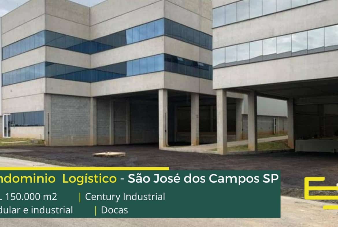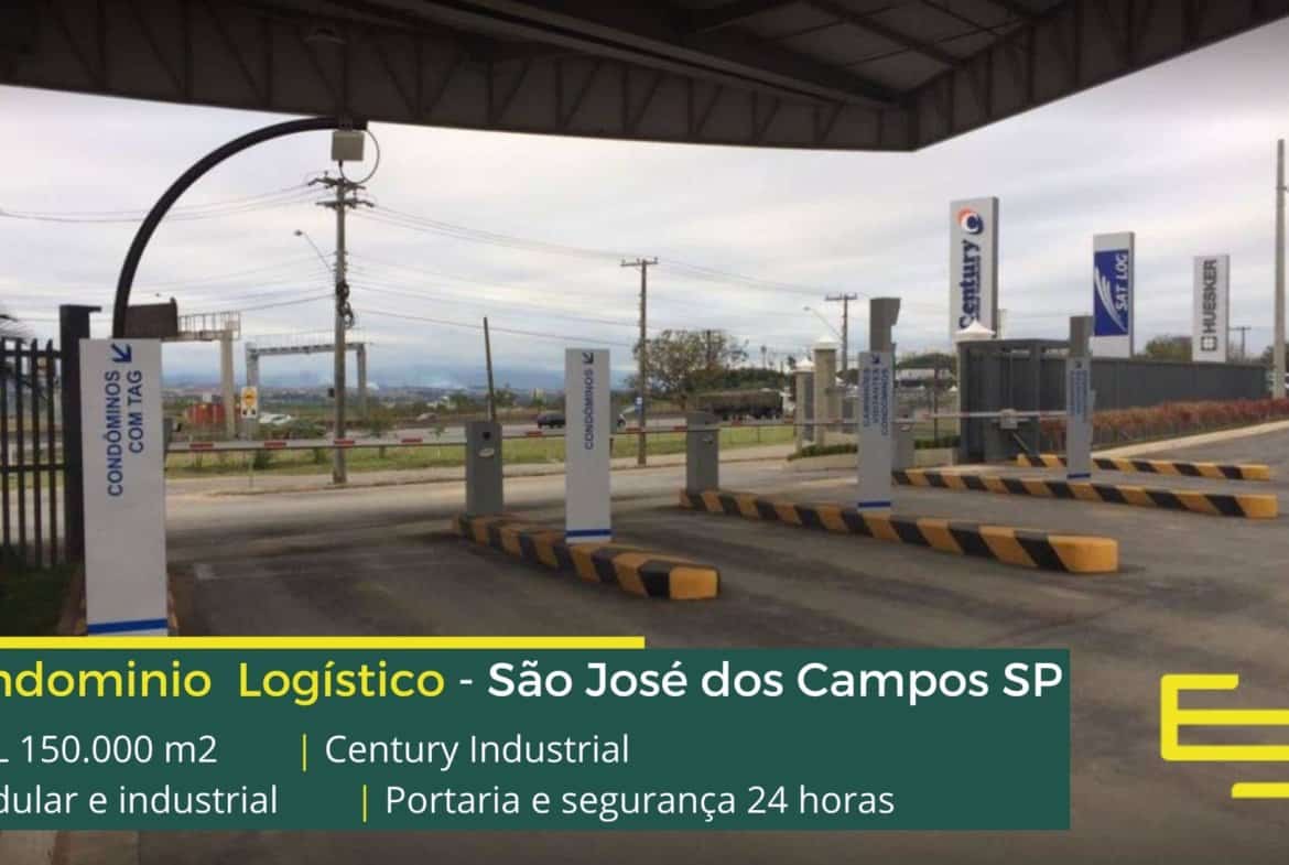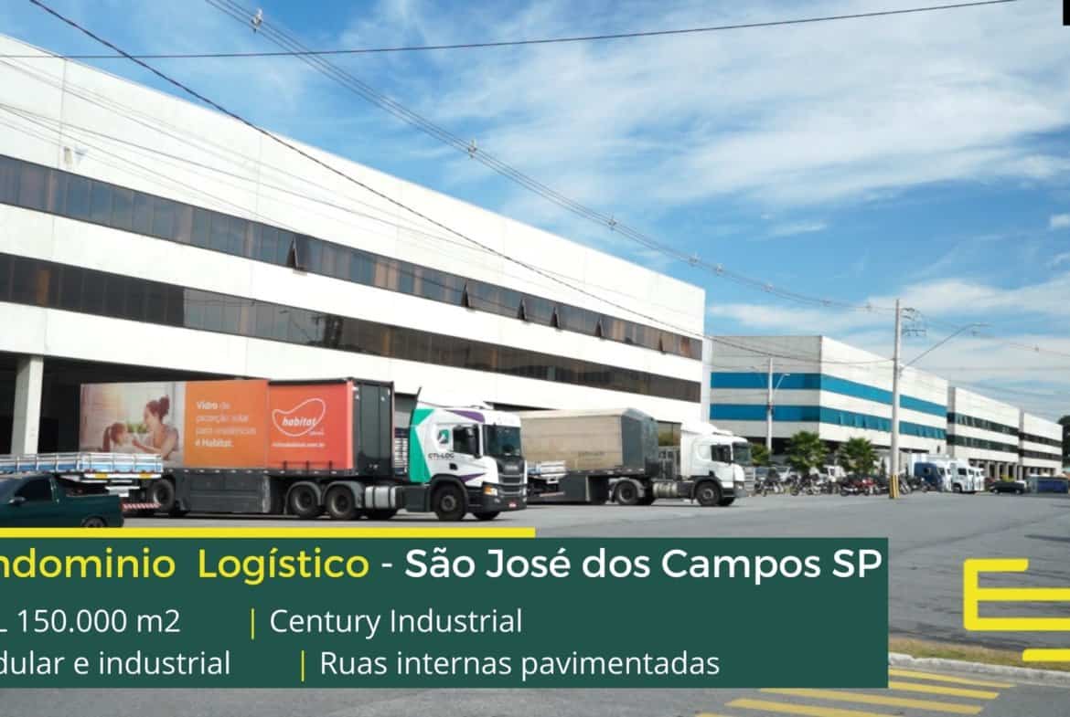 Aluguel de galpão São José dos Campos SP em condomínio para uso industrial e logístico, com localização privilegiada, na marginal da Via Dutra (BR-116), o condomínio Century industrial conta com ABL de 153.927 m2 permite fácil acesso as cidades de Jacareí, Caçapava e Taubaté e que além disso permite locação de galpões em São José dos Campos a partir de 2000 m2.