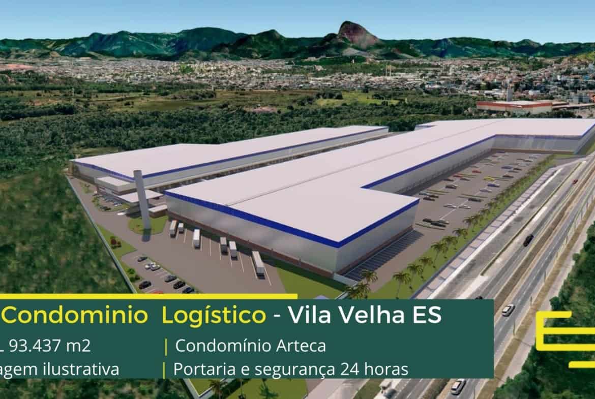Aluguel de galpão em Vila Velha ES em condomínio logístico localizado as margens da Rodovia Darly Santos, a 7k km da BR 262, a 17 km do Aeroporto e com fácil acesso as cidades de Vitória e Viana, o Arteca Log é um empreendimento que conta com área construída de 90.000 m2, e permite locação de galpões em Vila Velha ES a partir de 2000 m2.