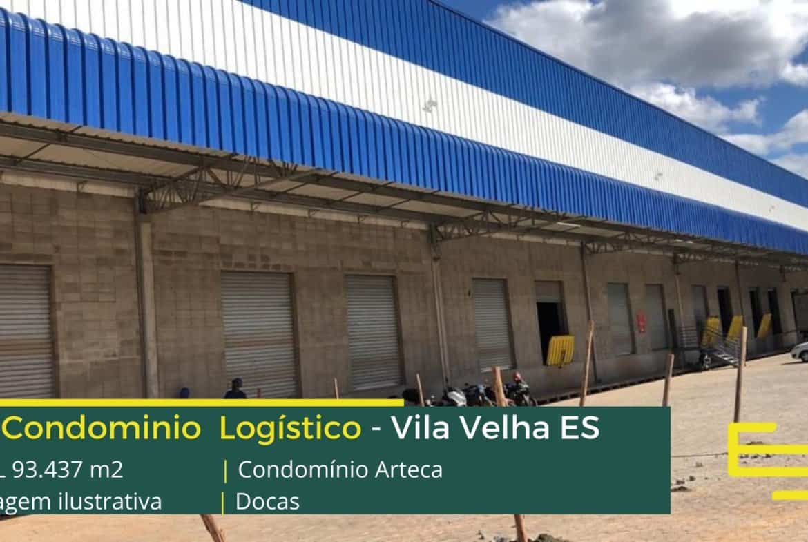 - Galpão para alugar em Vila Velha com pátio frontal as docas pavimentado.