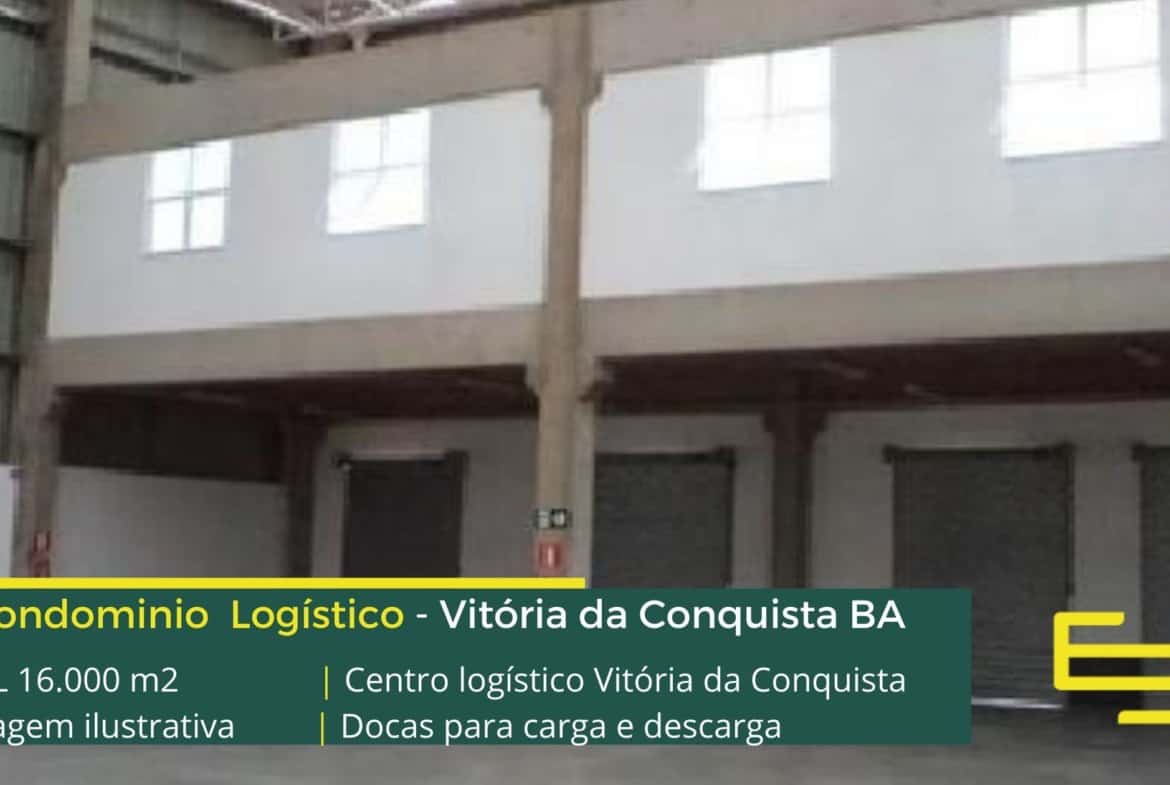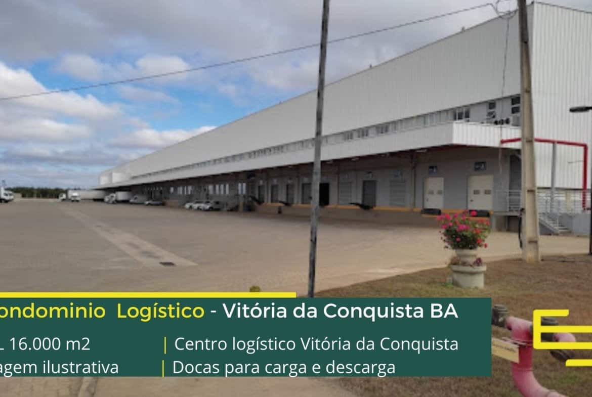 Galpão para alugar em Vitória da Conquista BA em condomínio logístico no Anel Viário, com portaria e segurança armada, e além disso, galpões modulares com docas cobertas, com acesso direto pelos dois sentidos de tráfego do Anel Rodoviário de Vitória da Conquista .