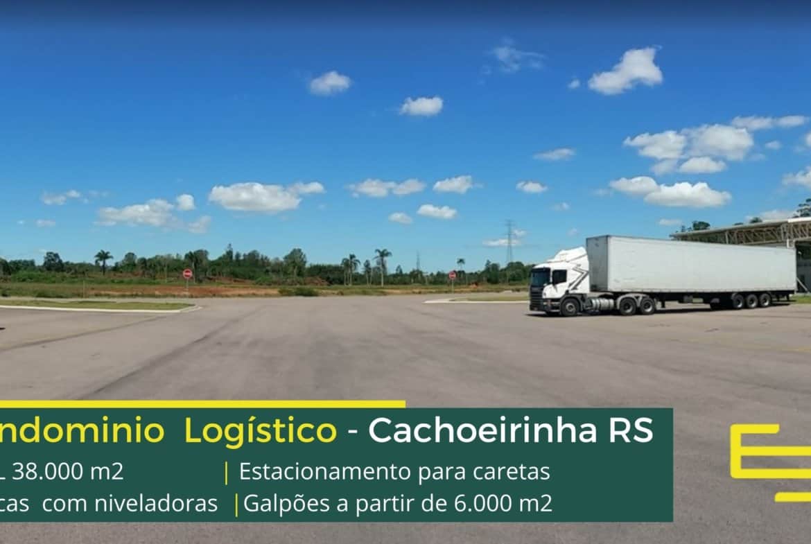 Condomínio logístico de locação de galpões em cachoeirinha que conta com amplo pulmão para carretas e sobretudo, estacionamento de automóveis.