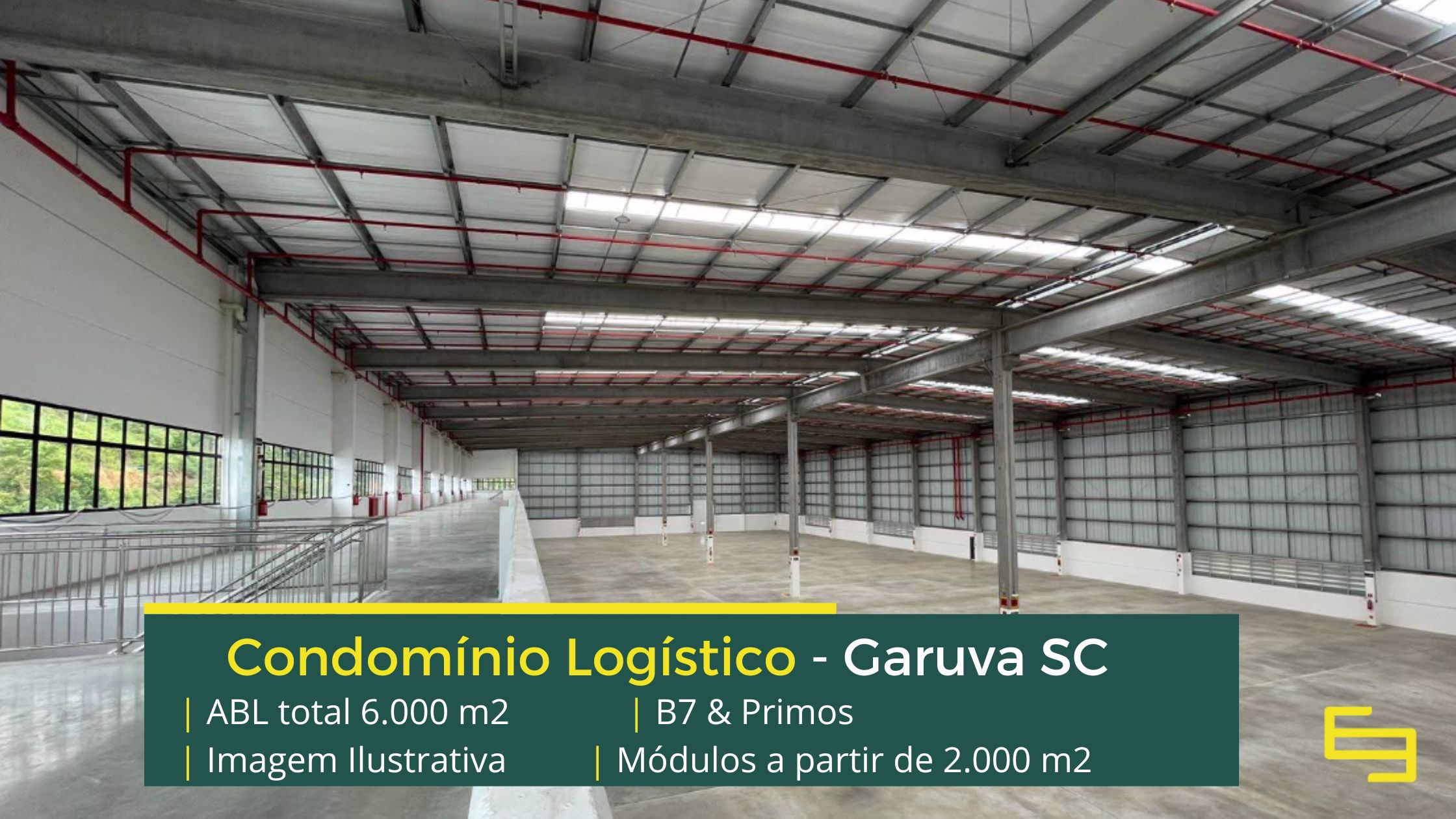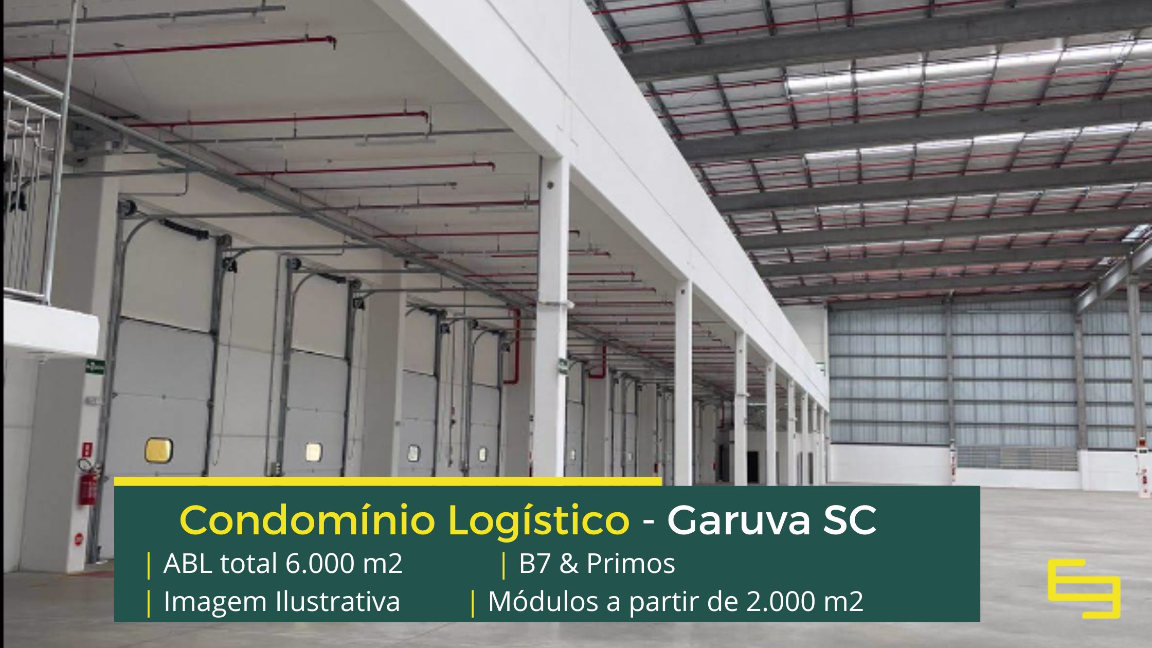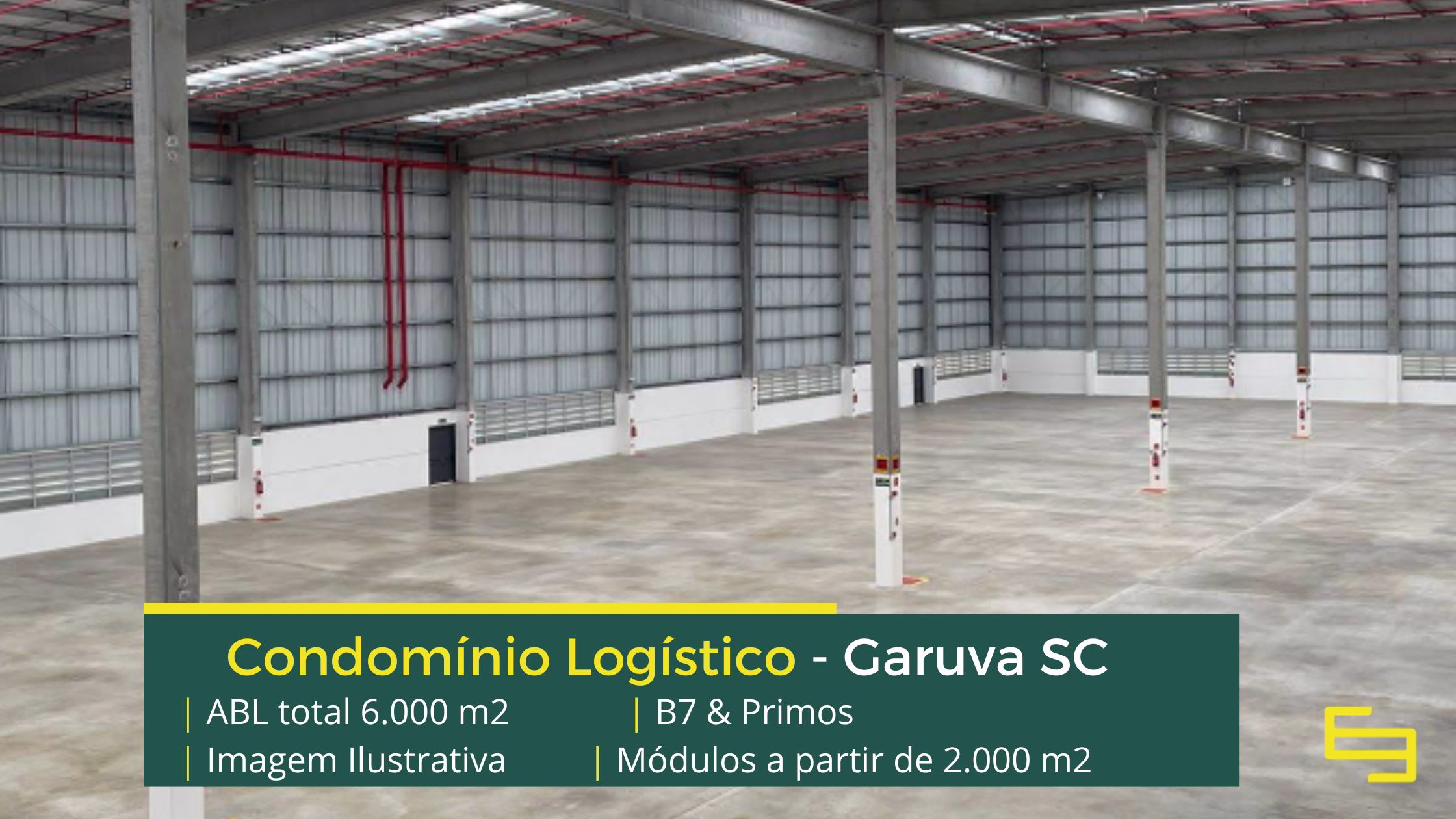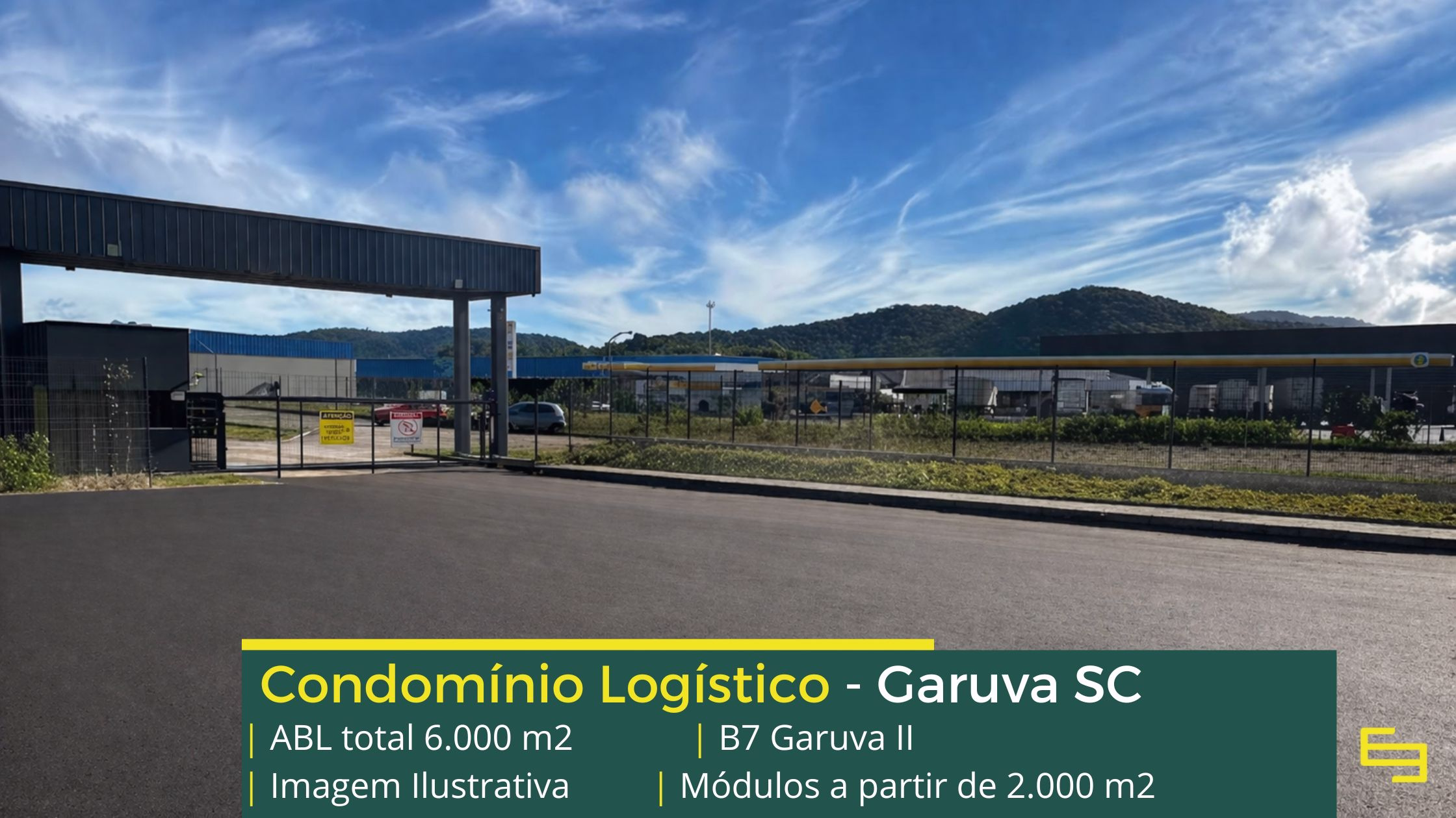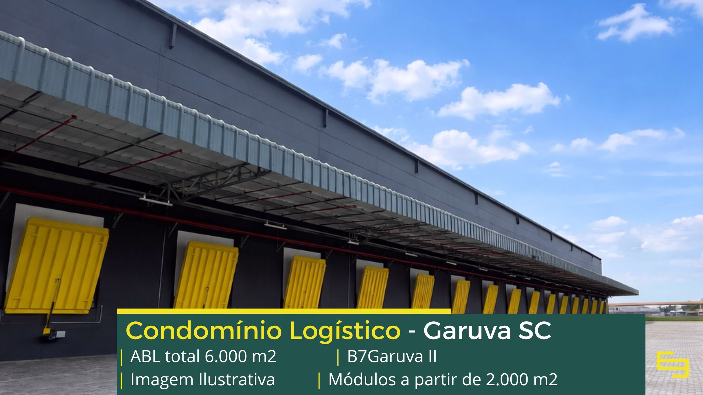 Aluguel de galpão logístico em Garuva SC em condomínio com localização privilegiada na Rodovia SC 417 no trevo com a Rodovia Estadual Governar Pedro Ivo Campos, com fácil acesso ao Porto de Navegantes e as cidades de Itajaí e Joinville. O Condomínio B7 Garuva II conta com área construída de 6500 m2 e permite, sobretudo, locação de galpões em Garuva a partir de módulos de 2.000 m2.