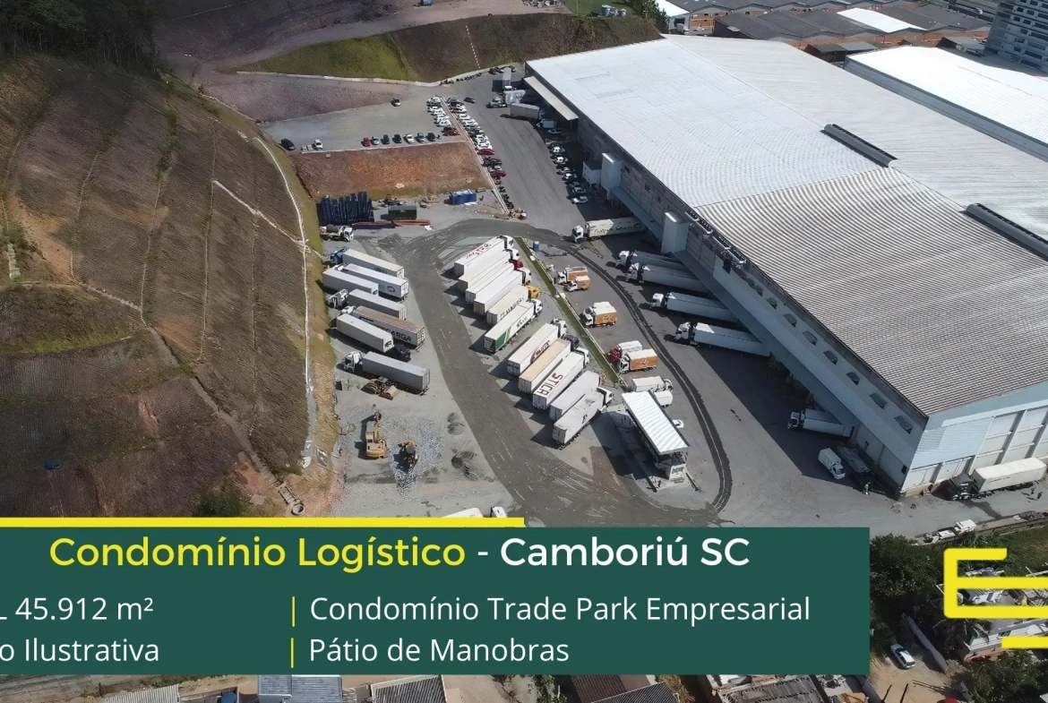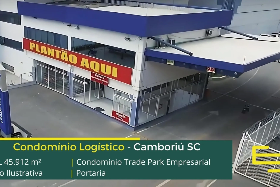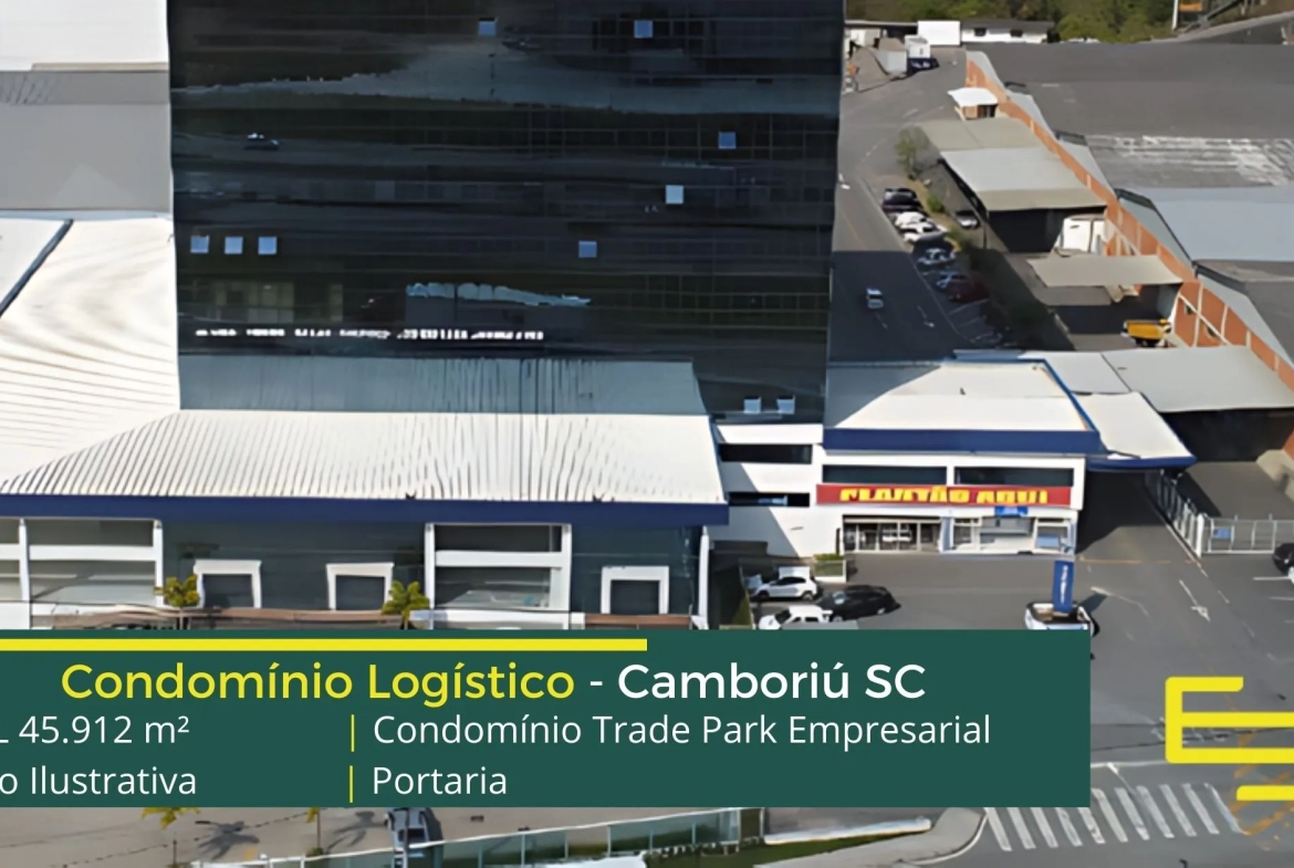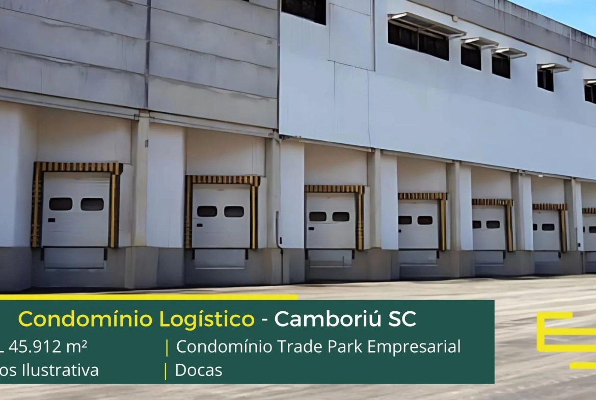 Aluguel de galpões logísticos em Camboriú SC, em condomínio fechado, com portaria e segurança, galpões com docas individuais para cada módulo, altura de 8 metros a 14 metros, e além disso, prédio para locação de escritórios.