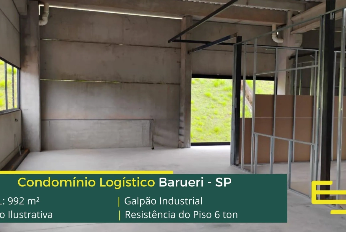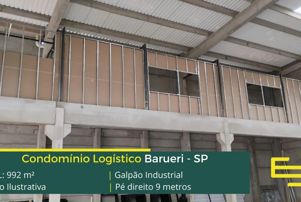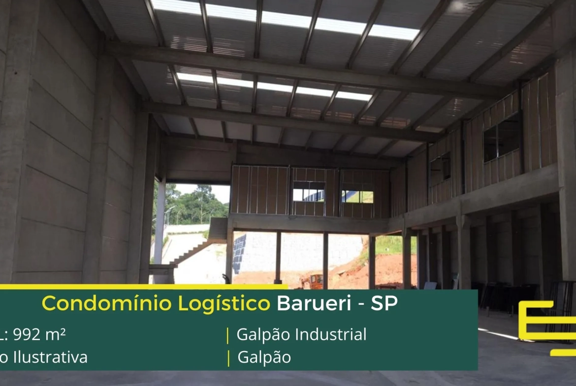 Aluguel de galpões para locação em Barueri – que é ideal para logística, transportes e além disso, distribuição, possui diferencial em sua localização, a 850 metros do Viaduto José Manoel da Conceição, este galpão para locação possuí área Locável total de 992 m².