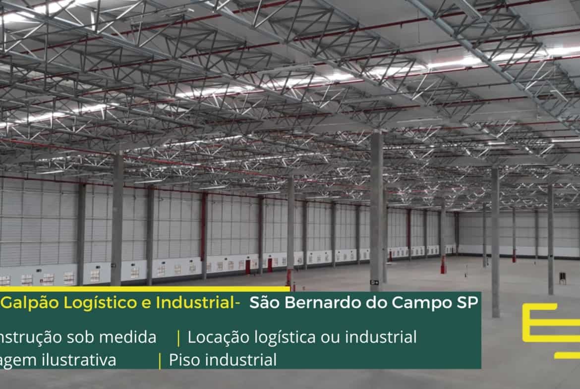 - Galpão para alugar no ABC com piso industrial e além disso de alta resistência.