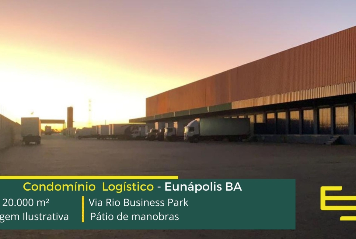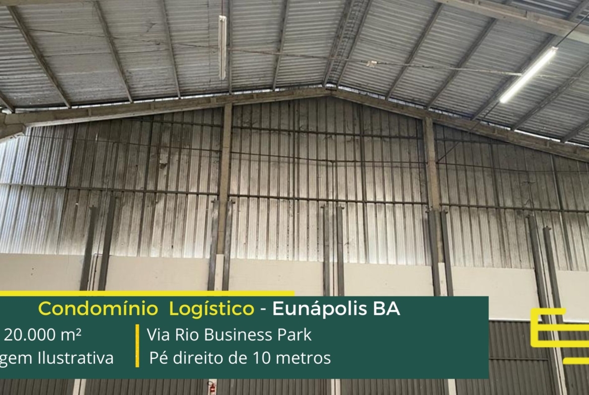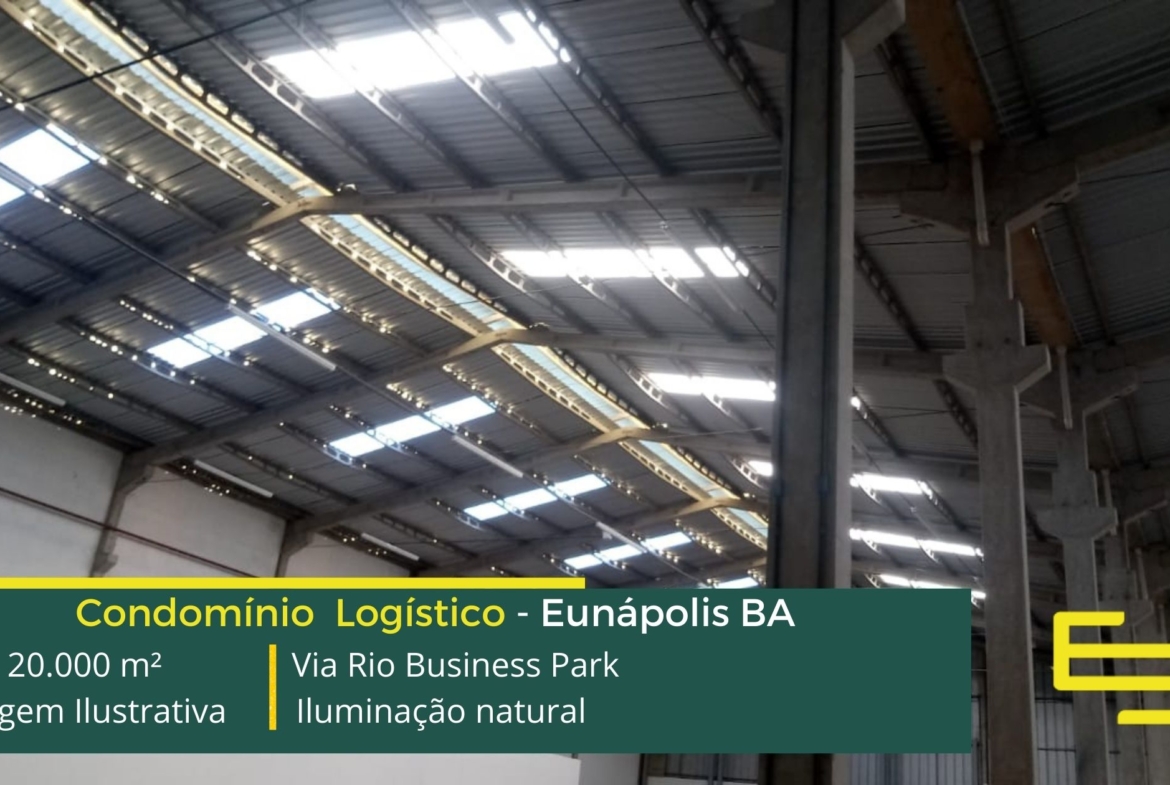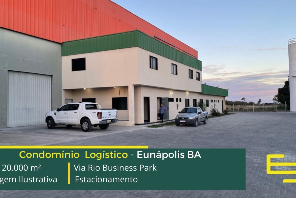 Aluguel galpão em Eunápolis BA em condomínio logístico localizado as margens da BR 101, no sentido de Teixeira de Freitas, e além disso, com fácil acesso a Rodovia Joel Mares, o Via Rio Business Park Eunápolis conta com área total construída de 20.000 m² e que permite aluguel de galpões em Eunápolis BA a partir de 1.000 m².