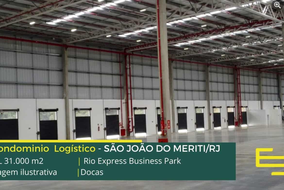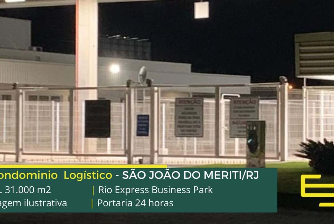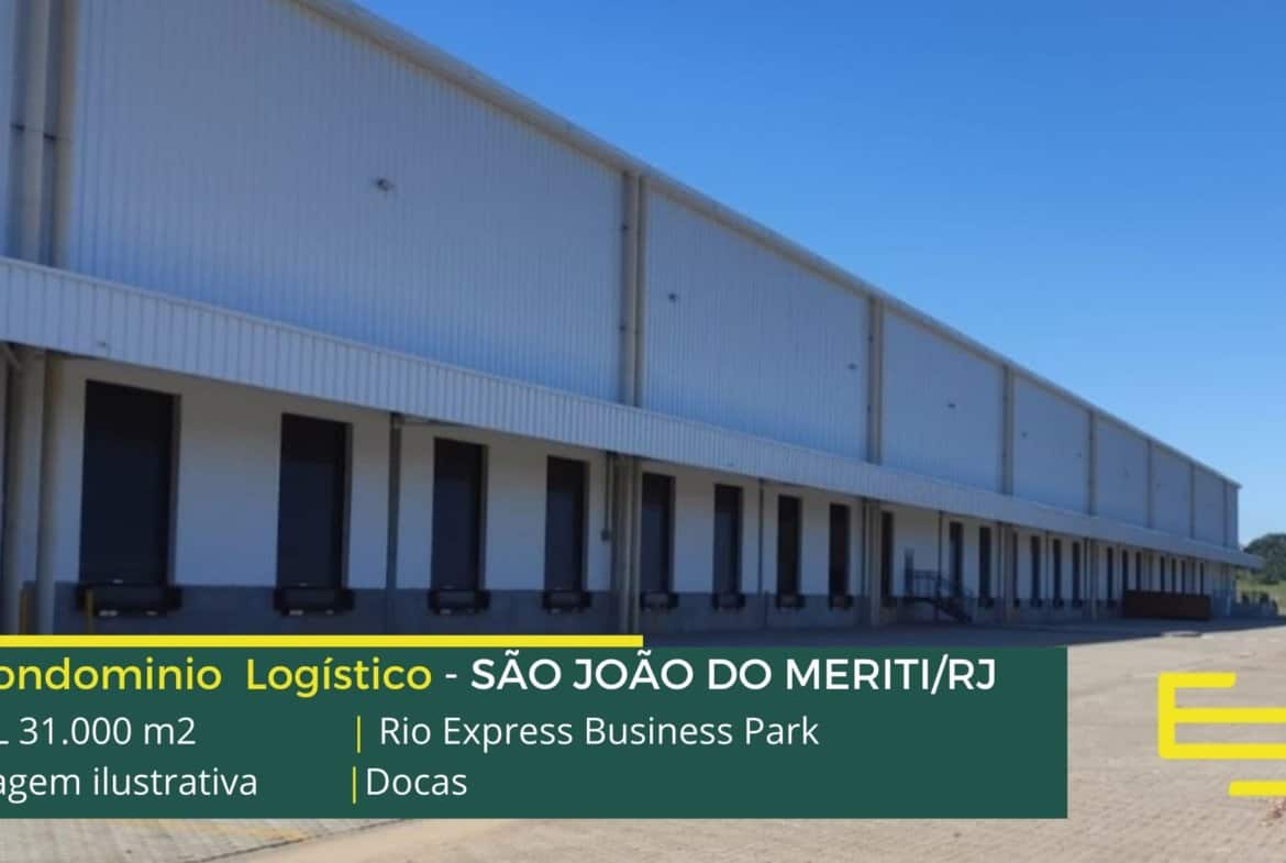 Aluguel de galpão logístico em São João de Meriti RJ, em condomínio fechado, com segurança armada, portaria 24 horas, docas para carga e descarga.