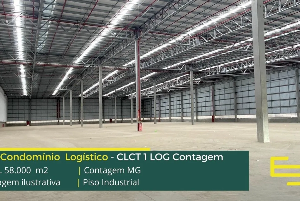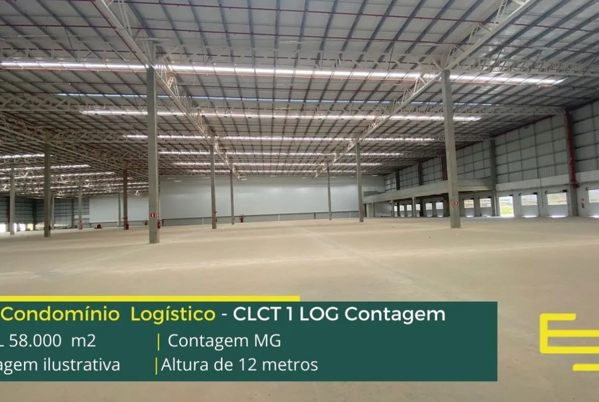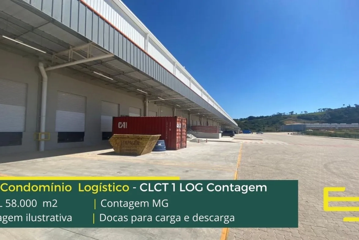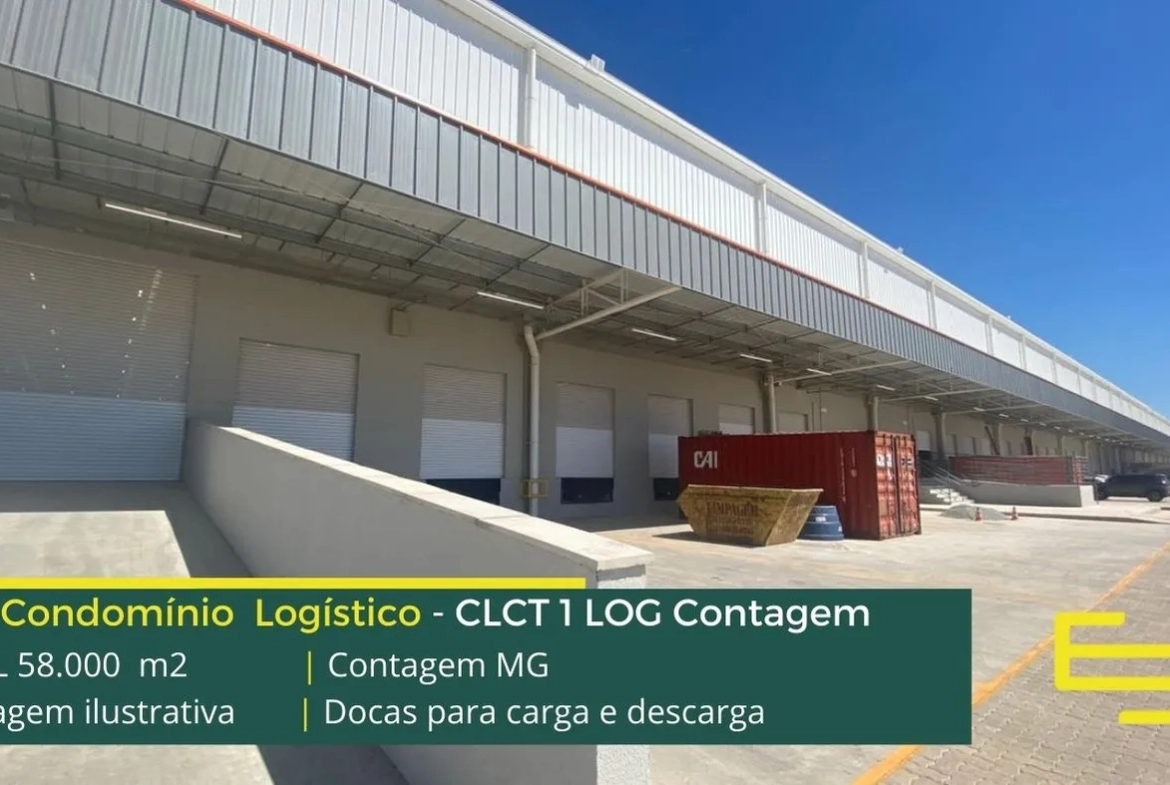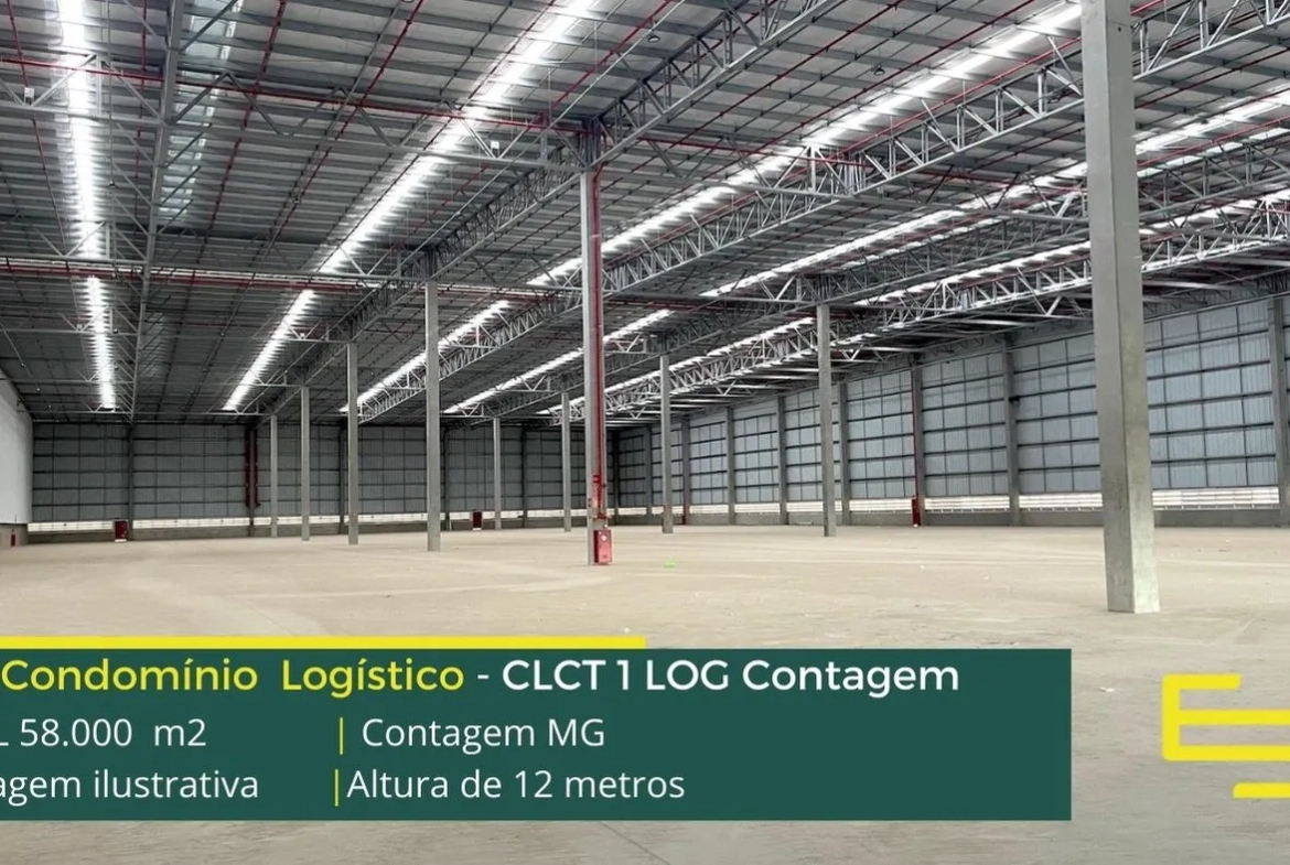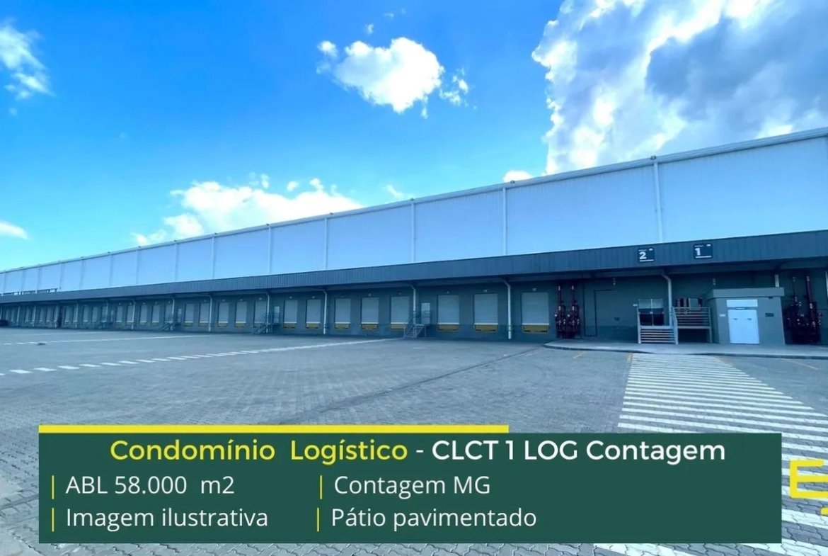 Locação de galpão em condomínio logístico na cidade de Contagem com iluminação natural, isolamento térmico e acústico, entre outras características e que foi desenvolvido para operações logísticas de distribuição e, sobretudo, transportes.