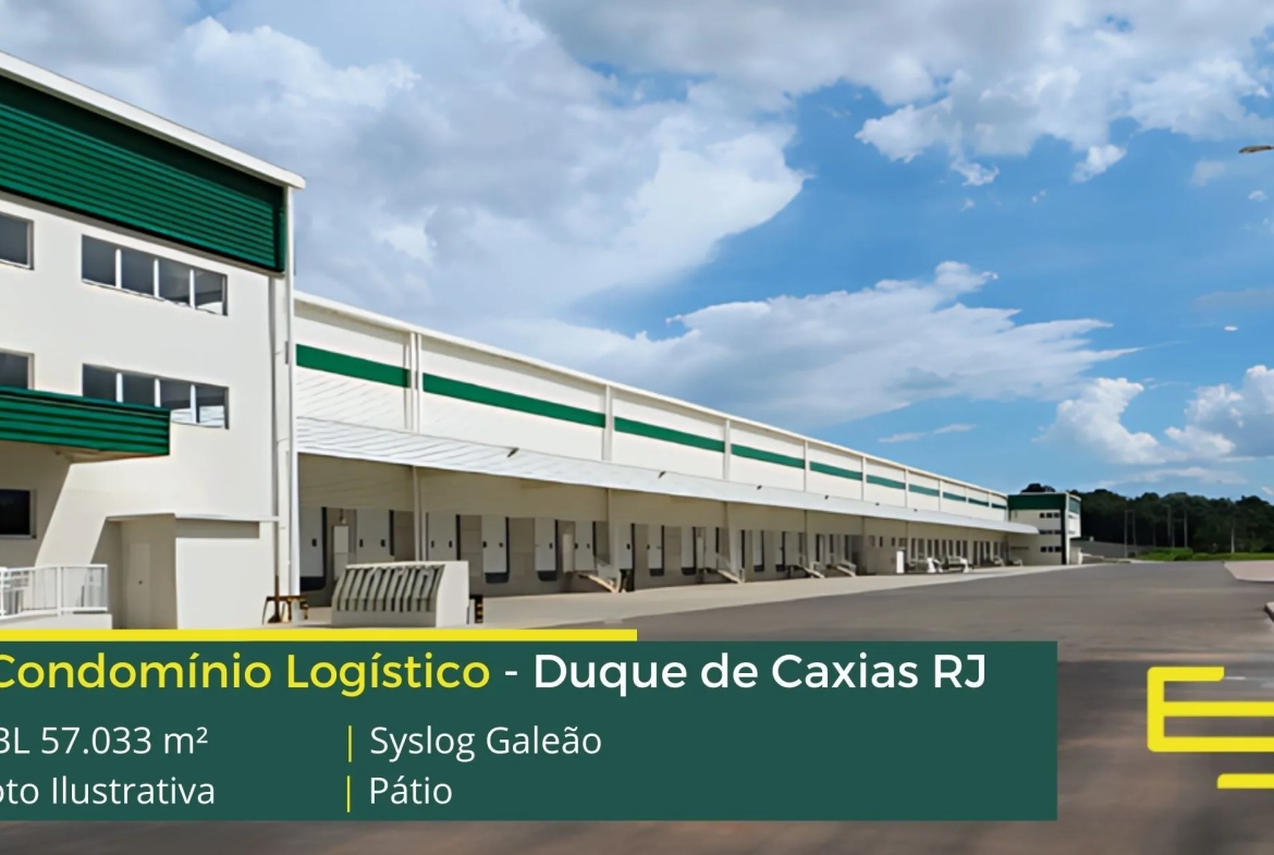 No condomínio Syslog Galeão, é possível a locação de galpão de galpões em Duque de Caxias, que é composto por 3 galpões e 16 módulos e sua infraestrutura ainda conta com portaria blindada, pátio para manobras e 1 doca para cada 650 m² de armazenagem, e além disso: