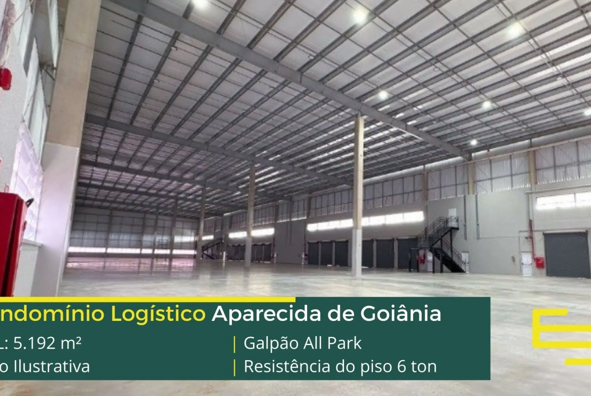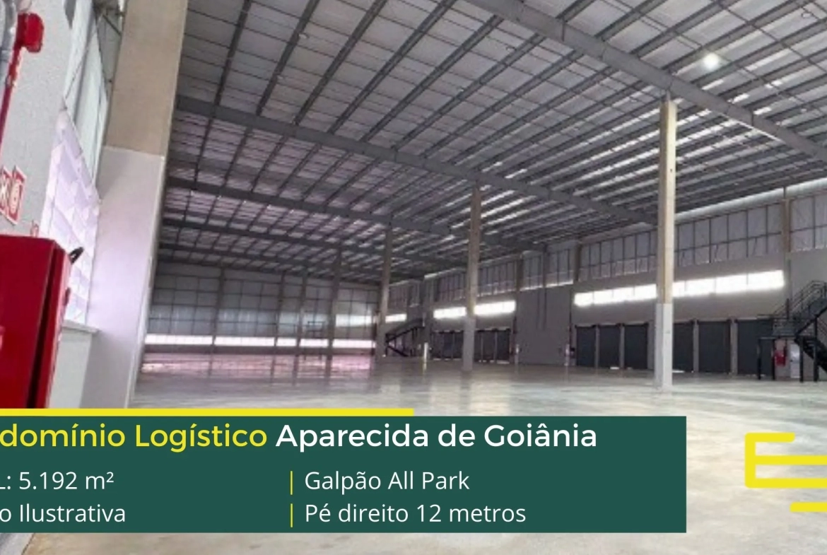 Armazém em para alugar em Aparecida de Goiânia localizado , 4,6 km da Rodovia Transbrasiliana, com fácil acesso a cidade de Hidrolândia e a cidade de Goiânia, e além disso ao Aeroporto Santa Genoveva, em condomínio que é ideal para logística, transportes e além disso, distribuição, galpão para locação em Aparecida de Goiânia que possuí área construída total de 5.192 m².