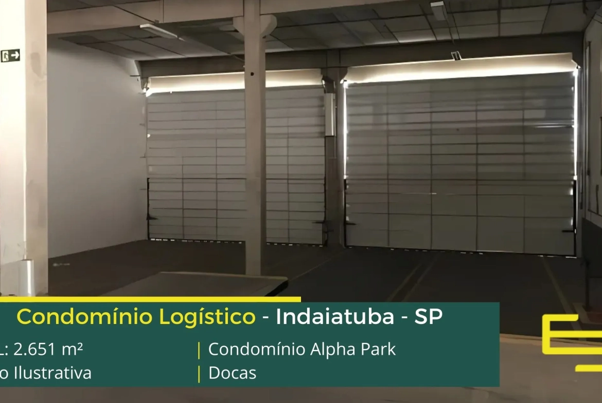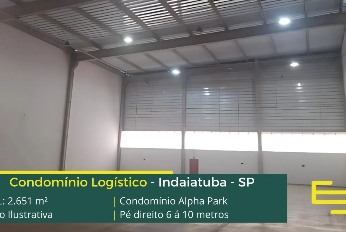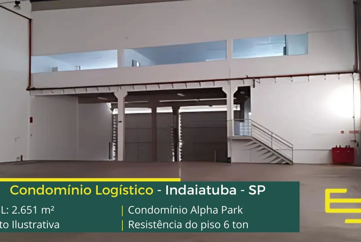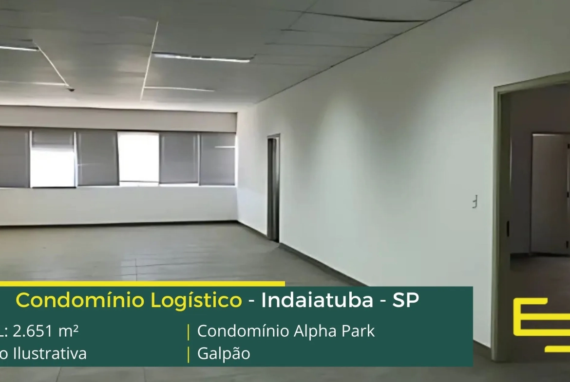 Armazém em Indaiatuba – O condomínio logístico com localização privilegiada, localizado a 1,0 km da Rod. Santos Dumont SP-075. O condomínio Alpha Park conta com área total construída de 2.651 m²;