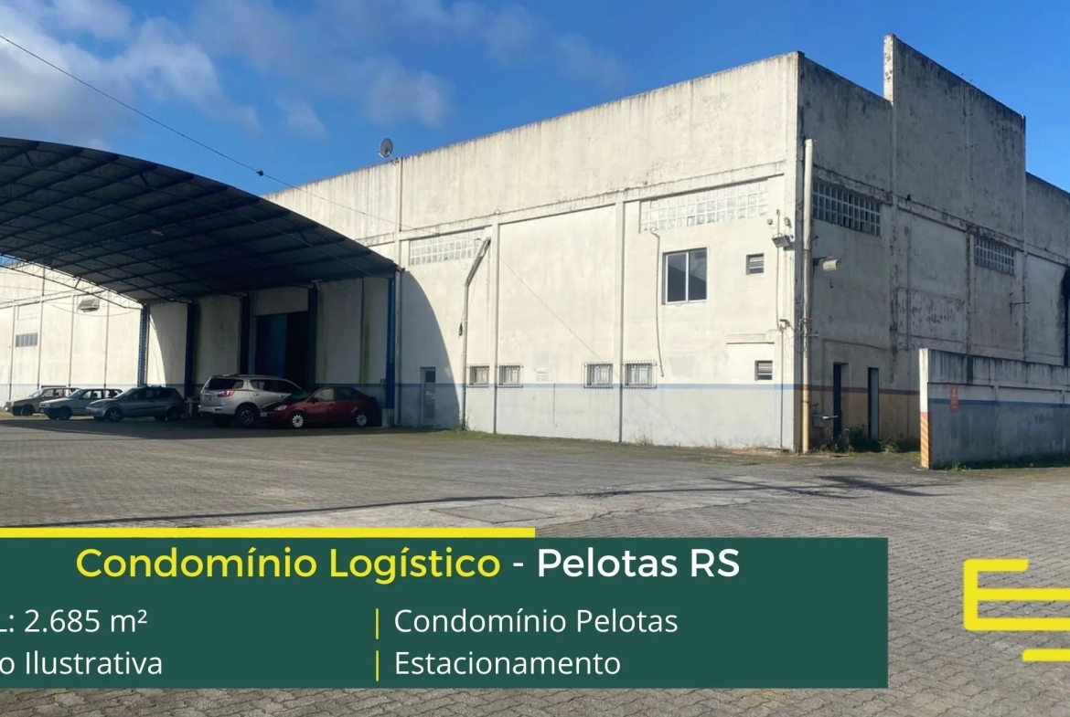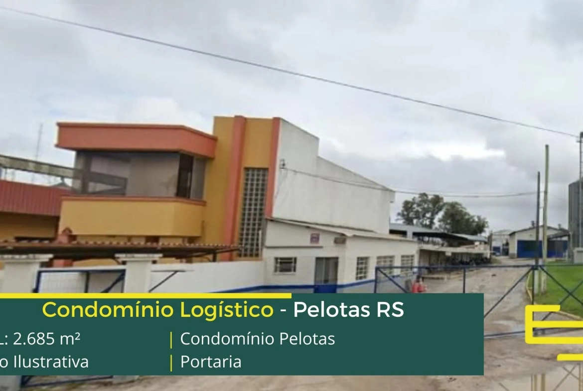 Aluguel de galpão em condomínio logístico na cidade de Pelotas desenvolvido para operações logísticas de distribuição e sobretudo transportes, que possuem as seguintes comodidades: