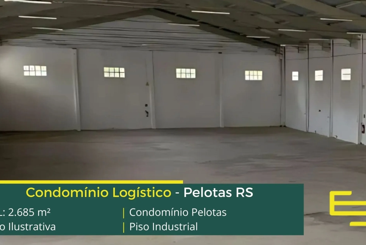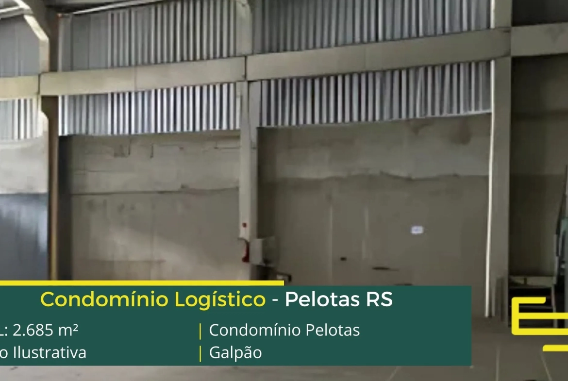 Armazém para alugar em pelotas – em condomínio logístico com localização privilegiada, localizado as margens da Rod. Gen Bento Gonçalves. O condomínio logístico Pelotas conta com área total locável de 2.685 m²;