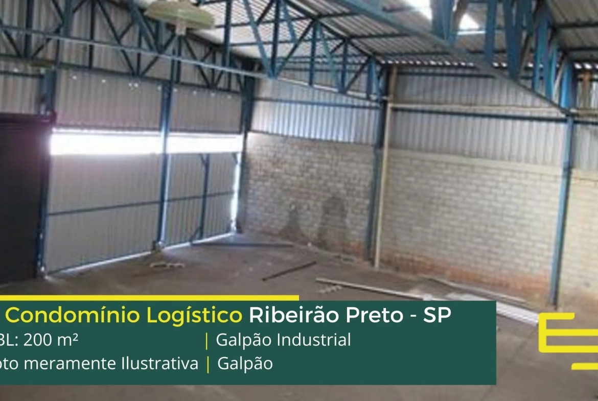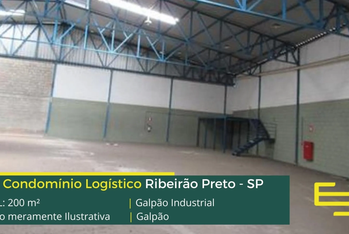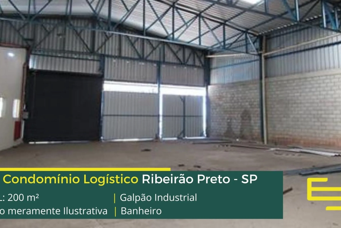 Armazém para alugar em Ribeirão Preto – que é ideal para logística, transportes e além disso, distribuição, possui diferencial em sua localização, 1,1 km da Rod. Anhanguera, este galpão para locação possuí área locável total de 200 m².