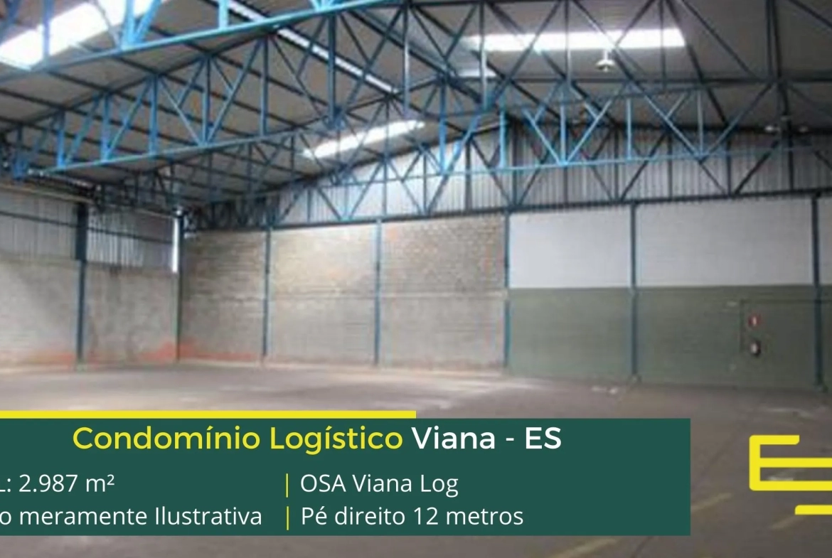 Armazém para alugar em Viana – que é ideal para logística, transportes e além disso, distribuição, possui diferencial em sua localização, 1,0 km da Rod. Deputado Aloízio Santos, este galpão para locação possuí área construída total de 9.678 m² e área locável de 2.987 m².