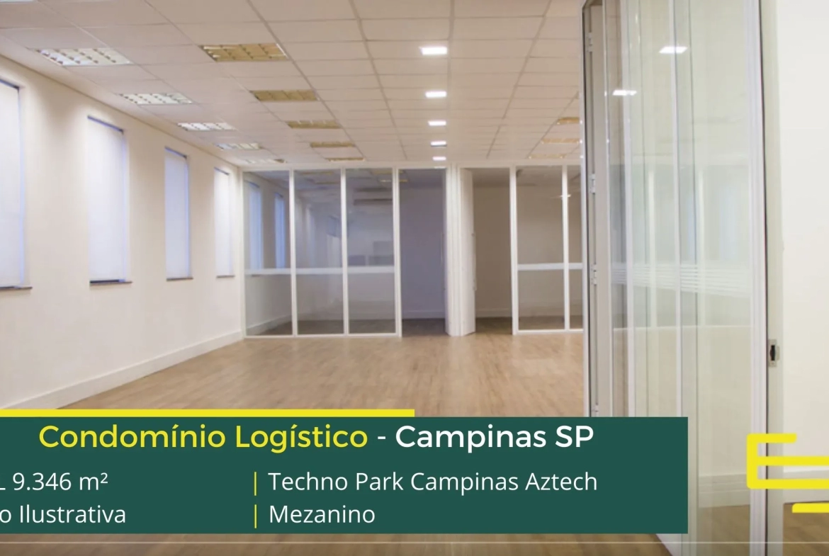 No condomínio Techno Park Aztech em Campinas conta com galpões para locação as seguintes características:
