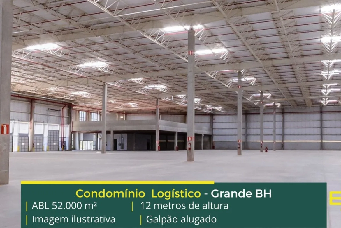 Galpão em condomínio Logístico para venda na Grande BH com localização privilegiada e alugado para empresa de primeira linha, com completa estrutura de segurança, como portaria blindada e sobretudo, galpões com altura de 12 metros, docas com niveladoras e com amplo pátio de manobras;