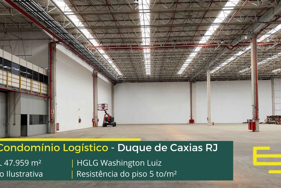 Aluguel de galpão em Duque de Caxias, condomínio logístico, com infraestrutura completa de alto padrão, esta localizado a menos de 1 Km da Rodovia Washington Luiz, a 21 km do centro do Rio de Janeiro e além disso, a cerca de 17 Km do Aeroporto Internacional Tom Jobim. O condomínio HGLG Washington Luiz, conta com cerca de 47.959 m² de área locável, e permite alugar galpões em Duque de Caxias a partir de 1500 m2.
