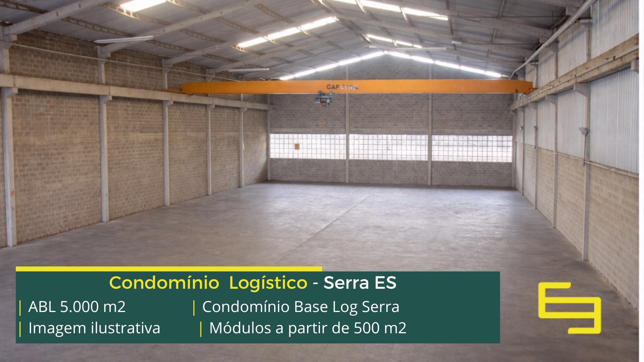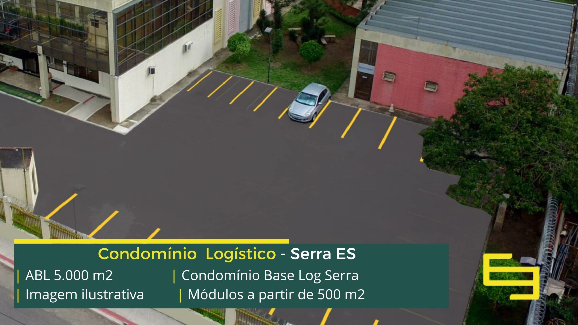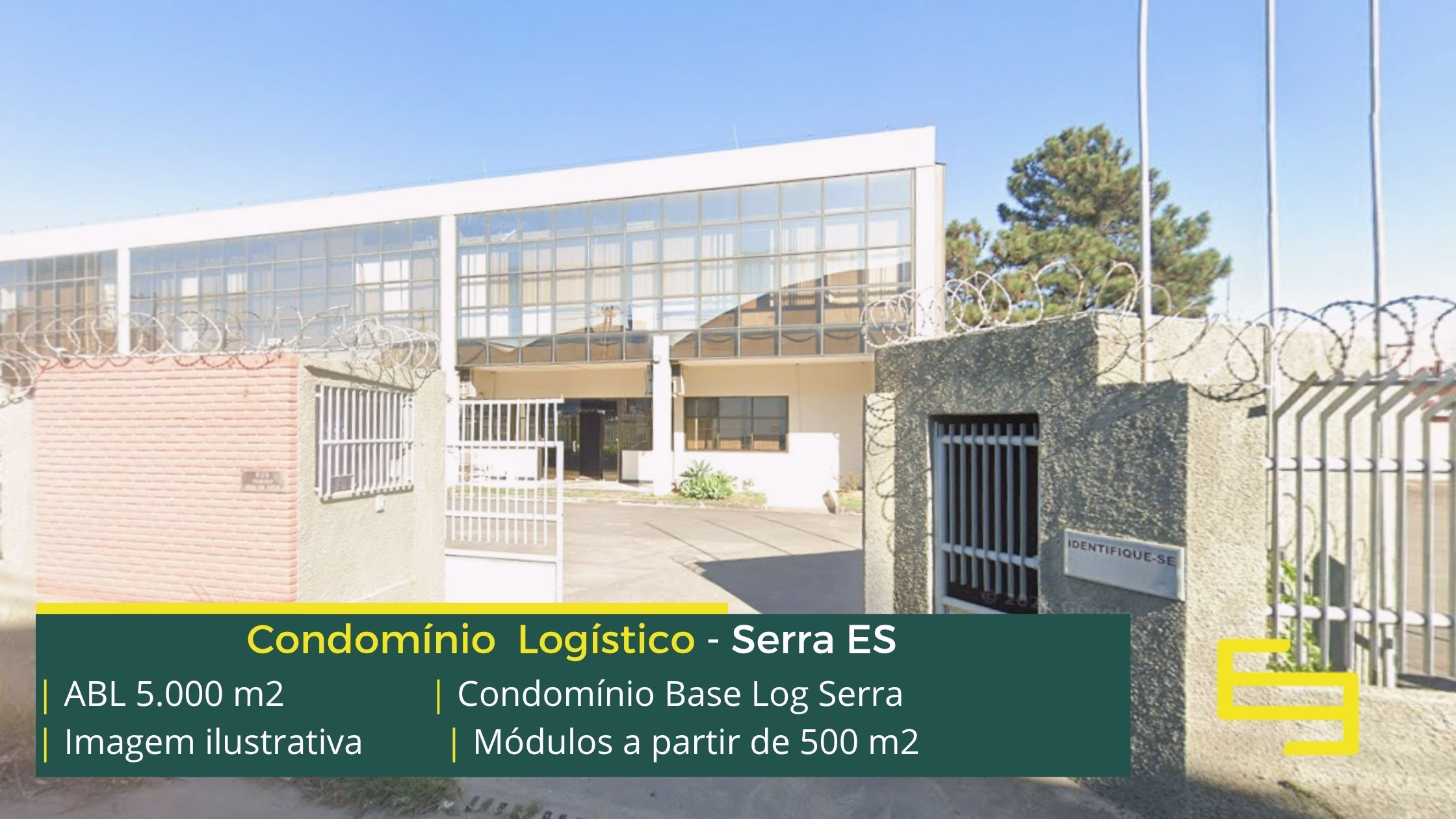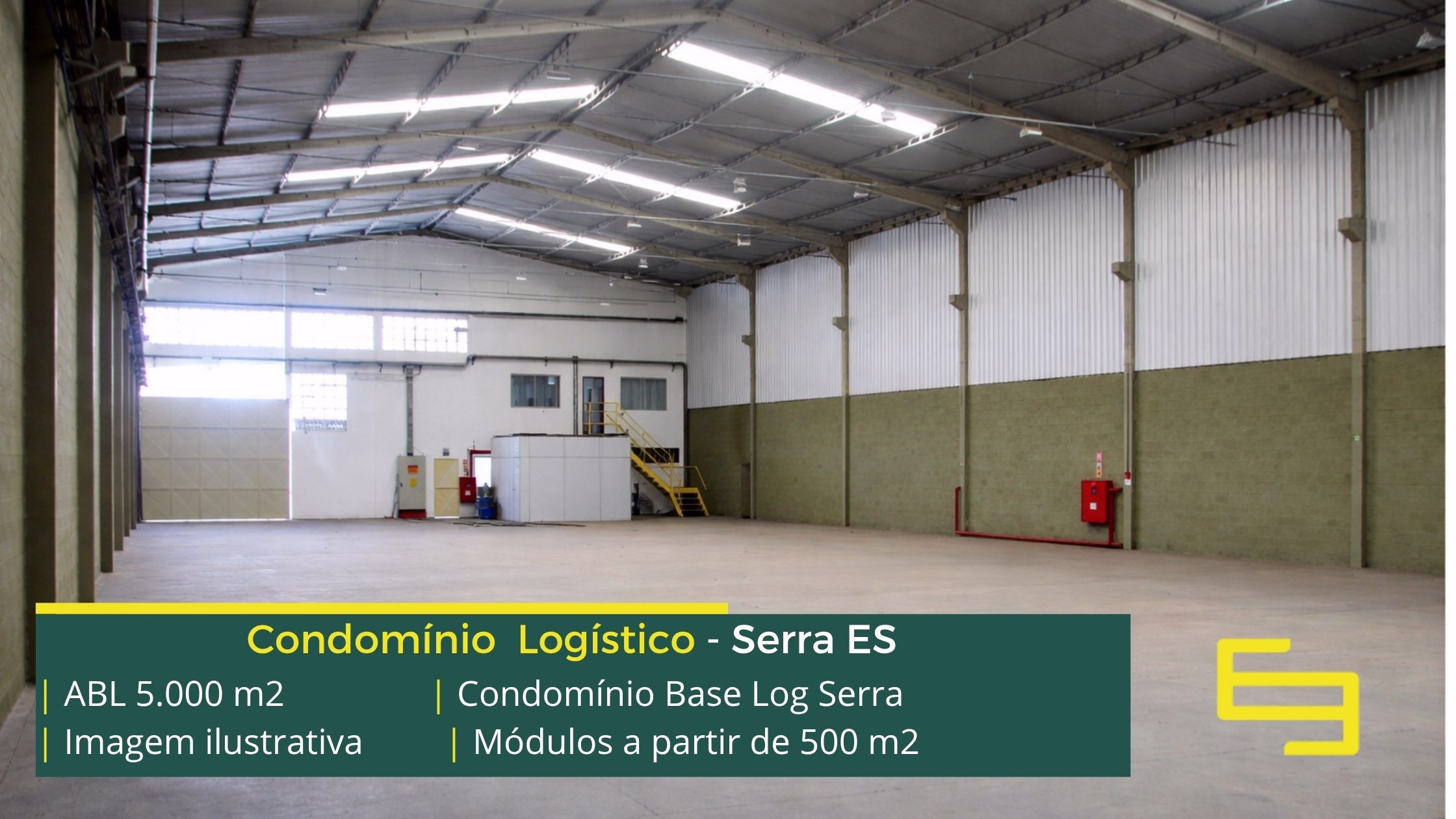 Galpão para aluguel em Serra ES em condomínio industrial e logístico com fácil acesso a Rodovia ES 010, ao Aeroporto de Vitórias e a Rodovia BR 101, bem como as cidades de Cariacica e Viana, o condomínio logístico Base LOG, conta com área construída de 5.000 m² e além disso, permite locação de galpões em Serra a partir de 500 m2.