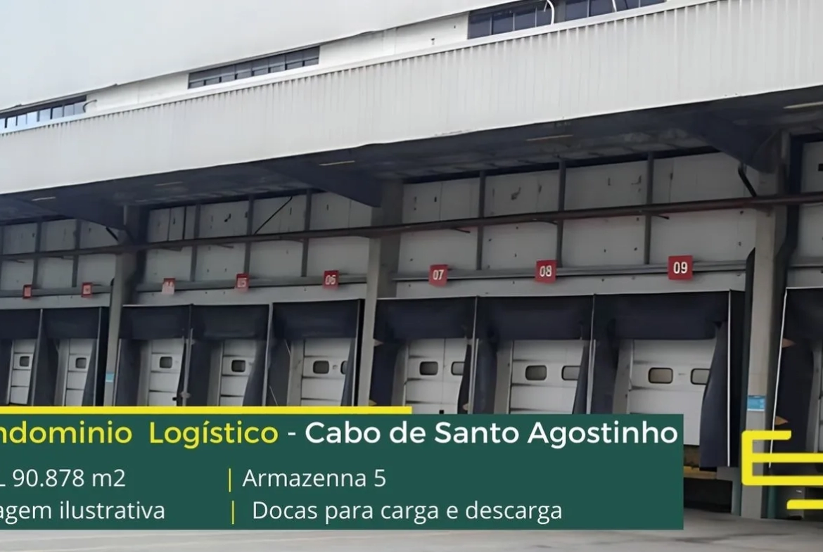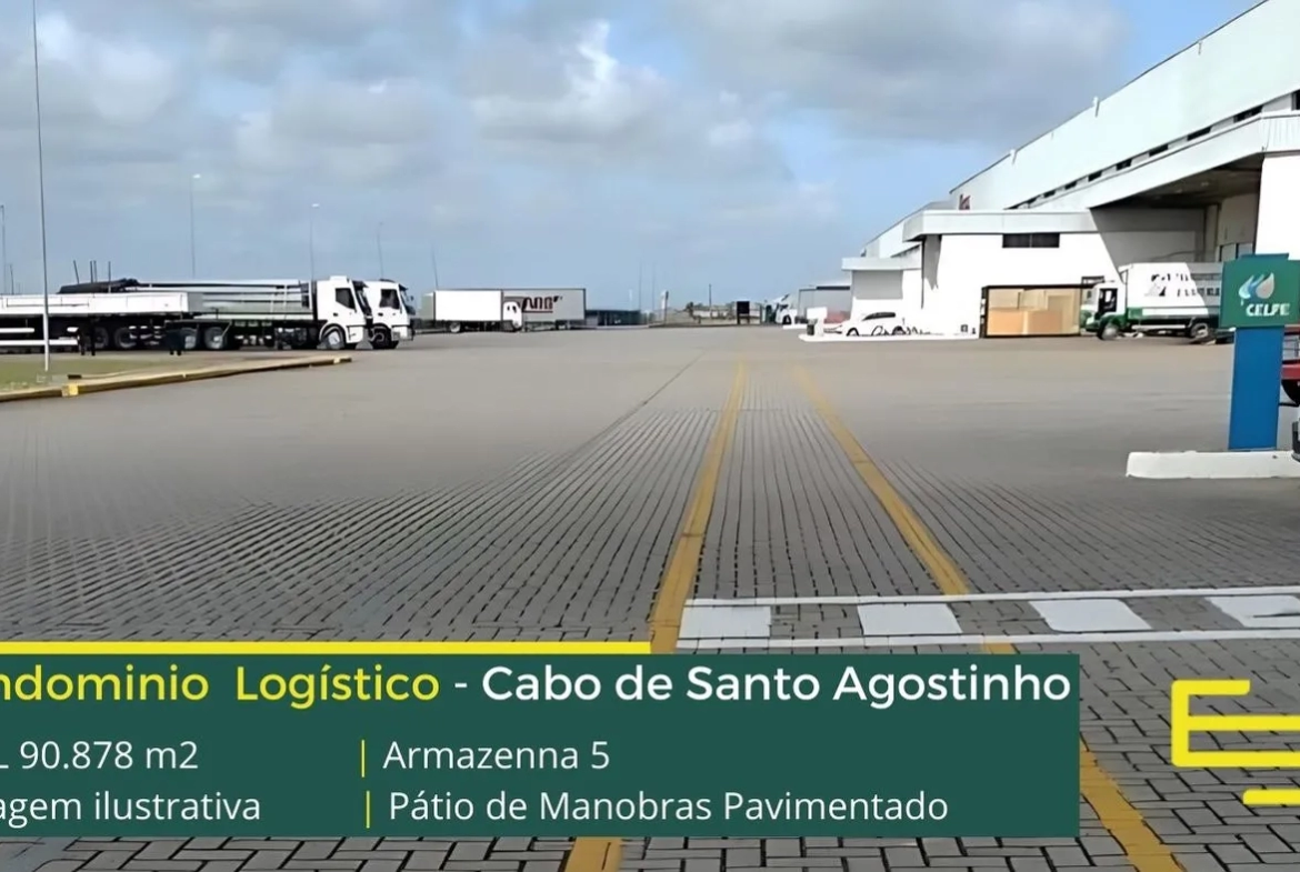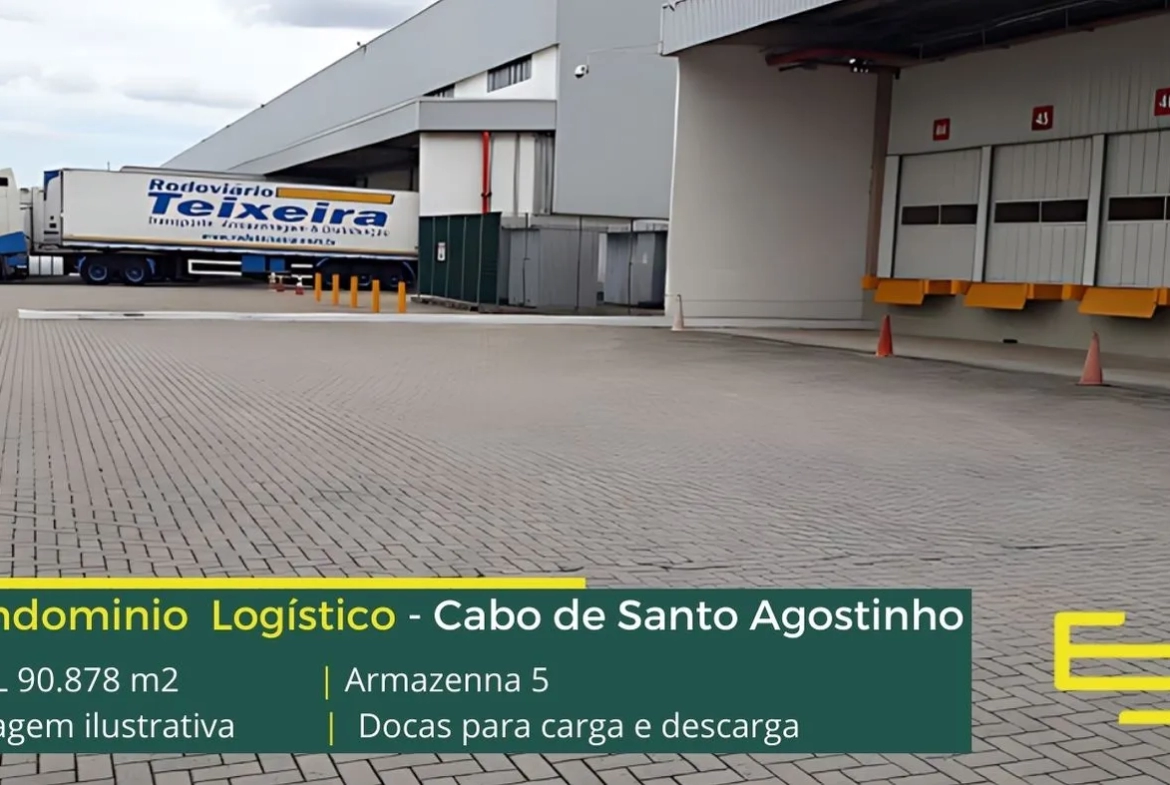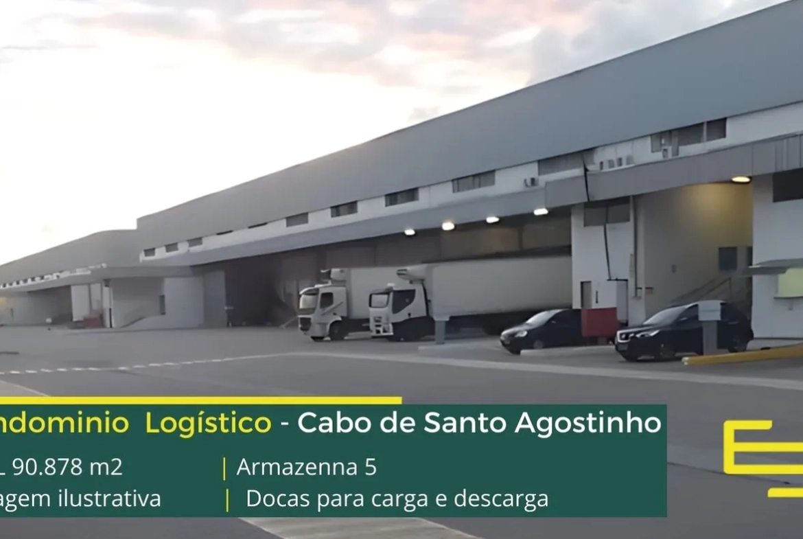 Galpão logístico para alugar em Cano de Santo Agostinho PE, com portaria e segurança 24 horas, estacionamento, e os galpões com docas para carga e descarga e amplo pátio de manobras.