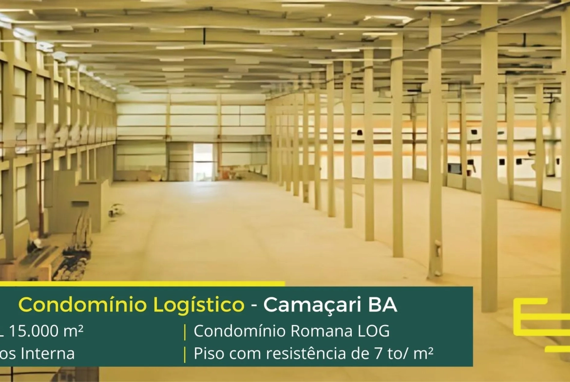 Galpão para alugar em Camaçari BA localizado na via Parafuso no Polo Logístico de Camaçari, próximo a Lê Biscuit e a Itaipava, o Condomínio logístico Romana LOG permite galpões para alugar em Camaçari, com 15.000 m² área locável, e módulos a partir de 2.000 m² e que além disso, poder ocupados de modo flexível.