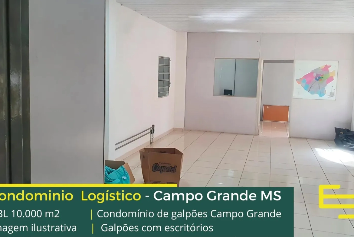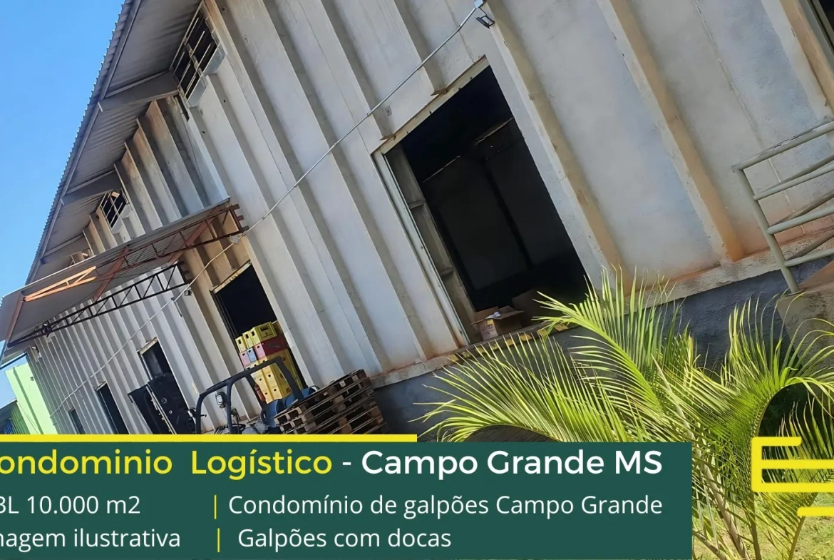 Galpão para alugar em Campo Grande MS em condomínio logístico com localização privilegiada, às margens da BR 163 e com fácil acesso a BR 262, ao aeroporto e ao distrito industrial.. O condomínio Campo Grande conta com área total construída de 3.000 m², e permite aluguel de galpões em Campo Grande a partir de 900 m².