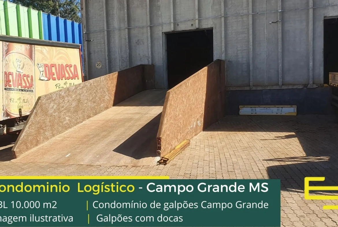 - Aluguel de galpões em Campo Grande com docas para carga e descarga, com rampa opcional;