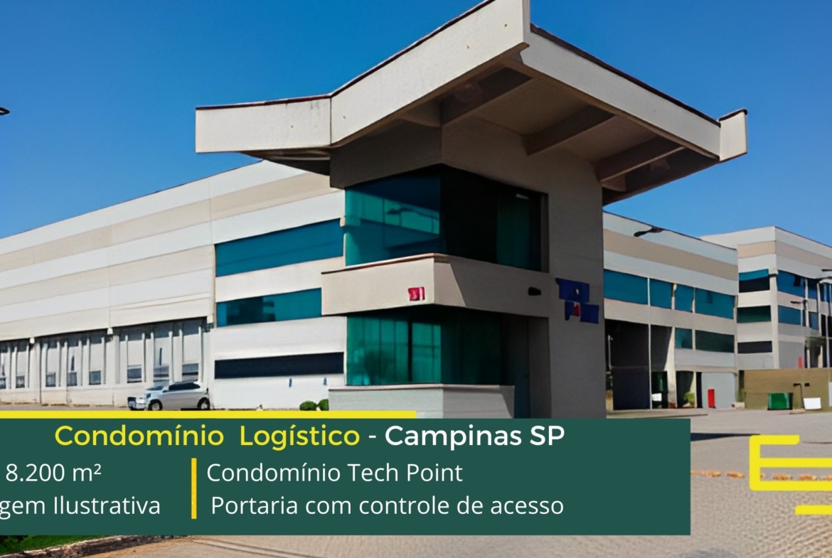 Galpão para alugar em condomínio em Campinas SP localizado junto ao entroncamento de importantes Rodovias do Estado de São Paulo, a Rod. Anhanguera, a Rodovia Dom Pedro I, e a Rod. Bandeirantes. O Condomínio Tech Point possuí área total construída de 8.200 m² e que sobretudo, permite aluguel modular e flexível de galpões em Campinas a partir de 1.313 m². Condomínio multi-uso constituído por 8 (oito) galpões, dispostos dois a dois em 4 blocos de edificações;