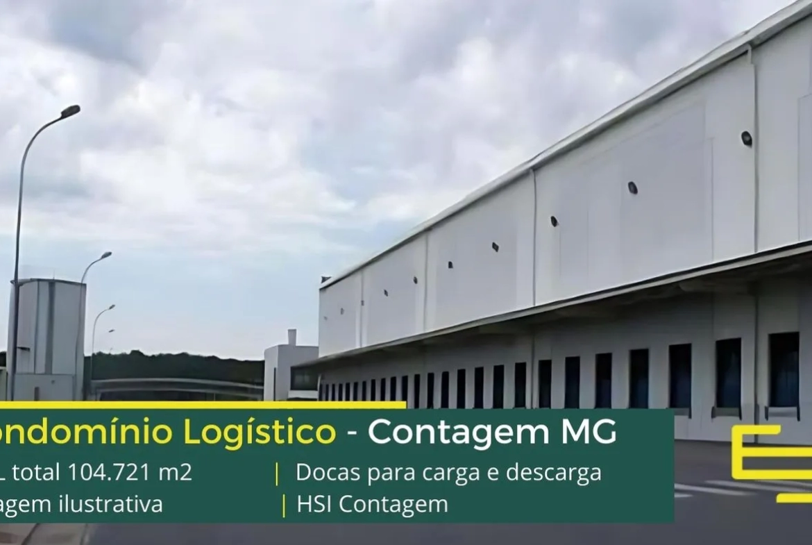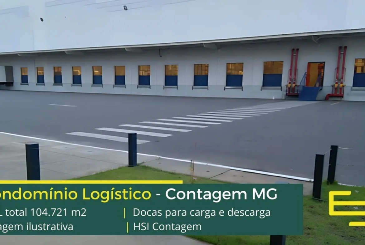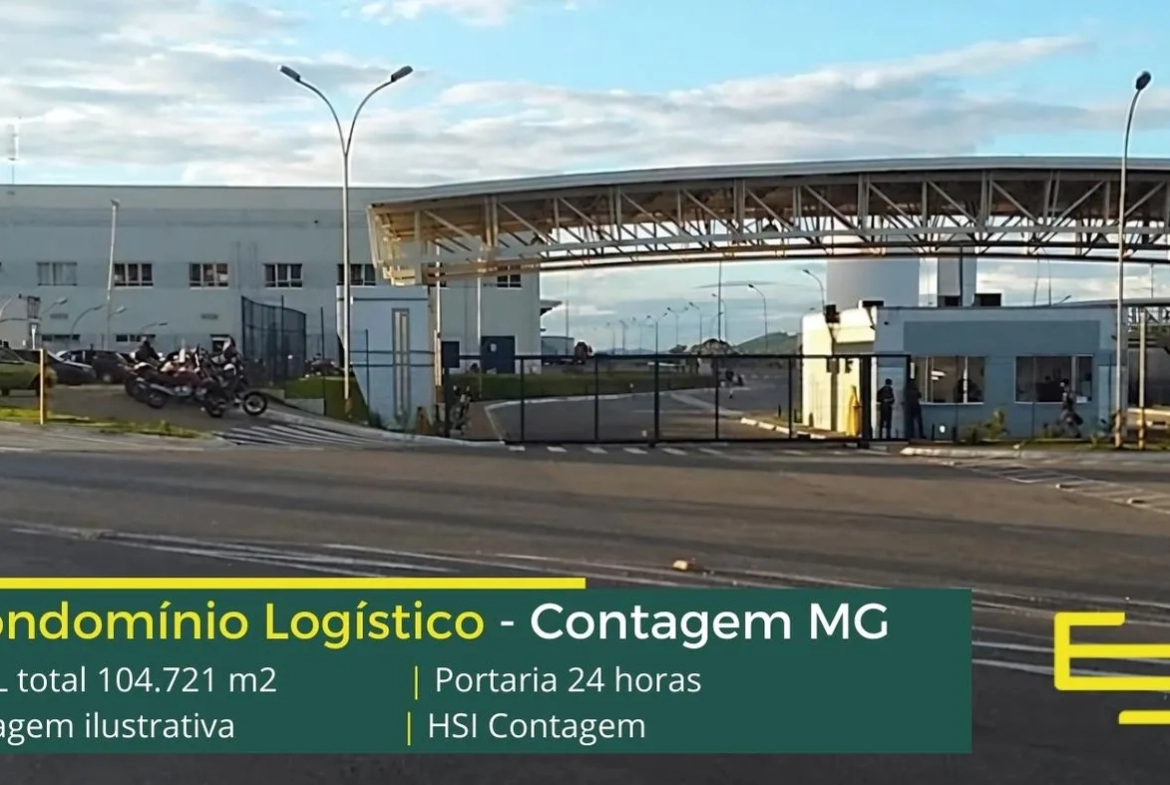 Galpão para alugar em Contagem MG, em condomínio logístico com portaria e segurança 24 horas, controle de acesso informatizado, galpões com piso industrial docas, amplo pátio de manobras e com excelente estrutura urbana de transporte público.