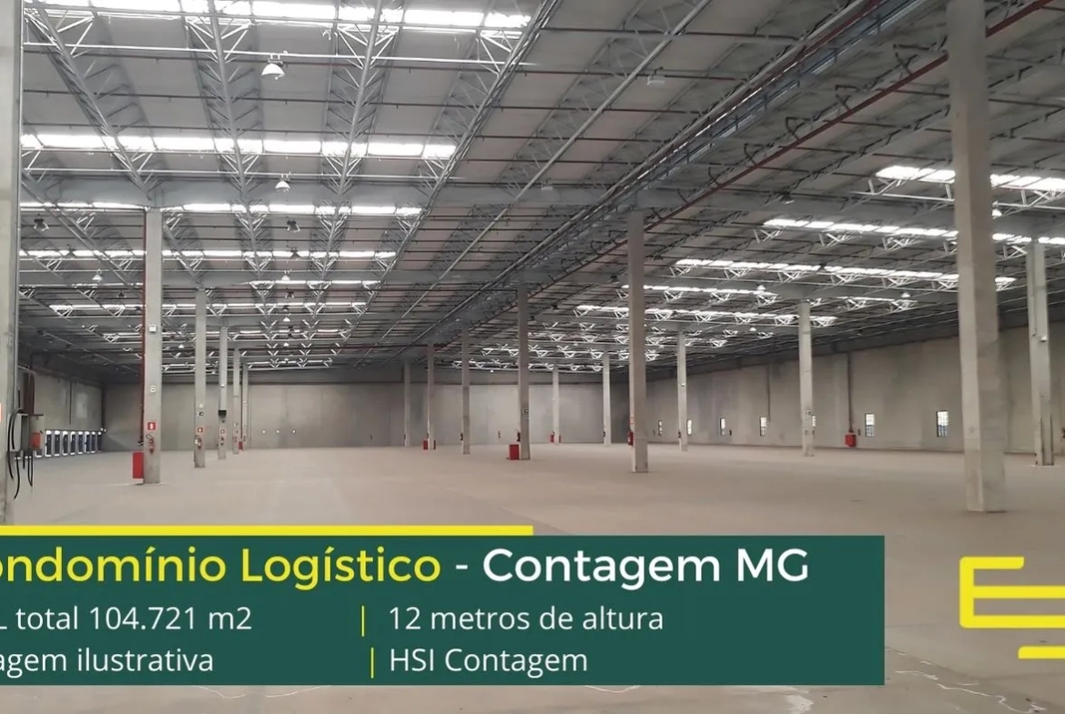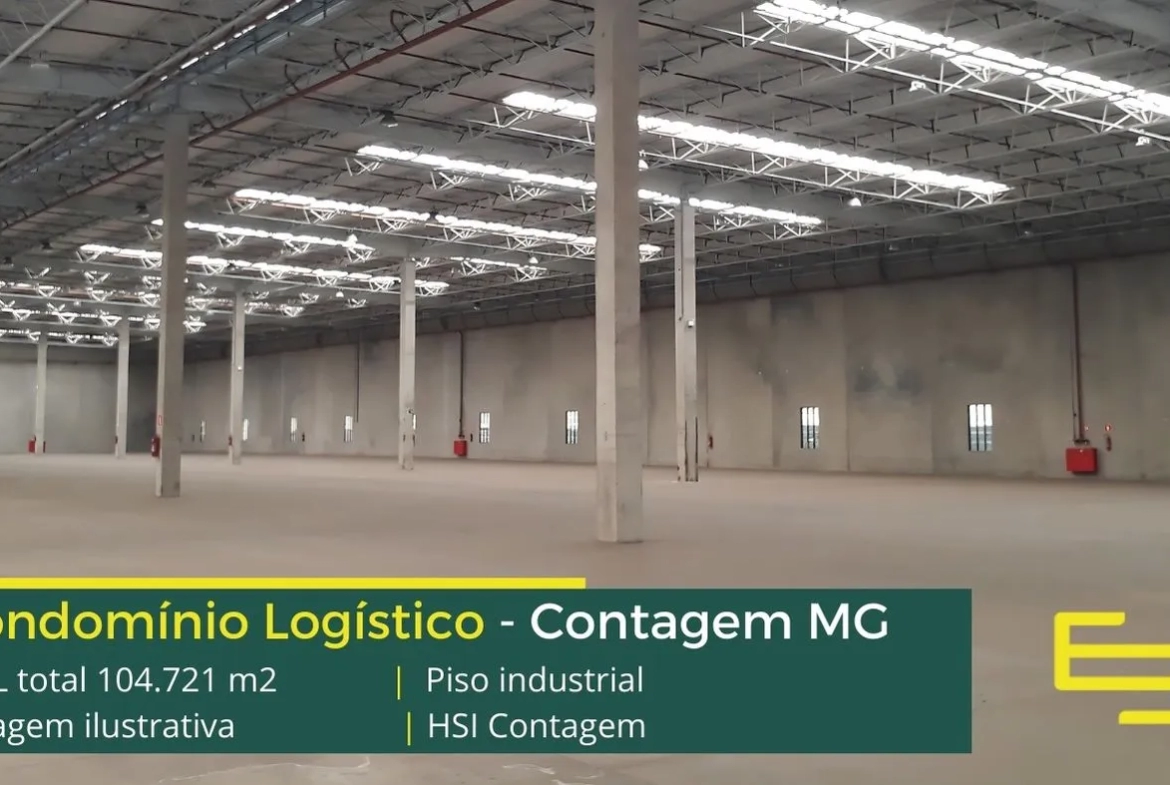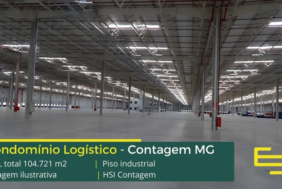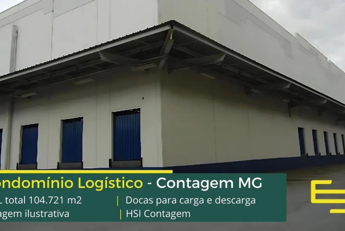 Galpão para alugar em Contagem MG, em condomínio logístico com portaria e segurança 24 horas, controle de acesso informatizado, galpões com piso industrial docas, amplo pátio de manobras e com excelente estrutura urbana de transporte público.