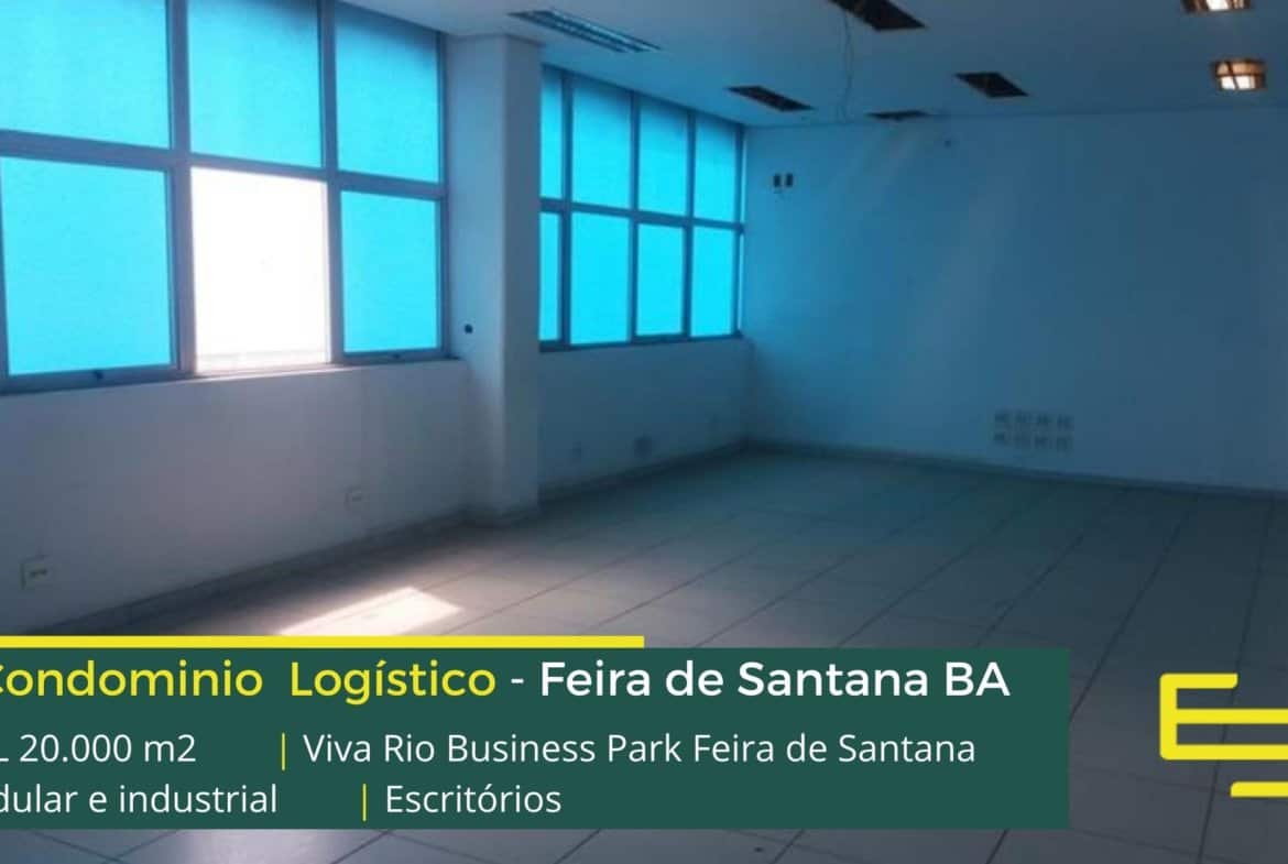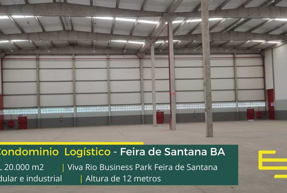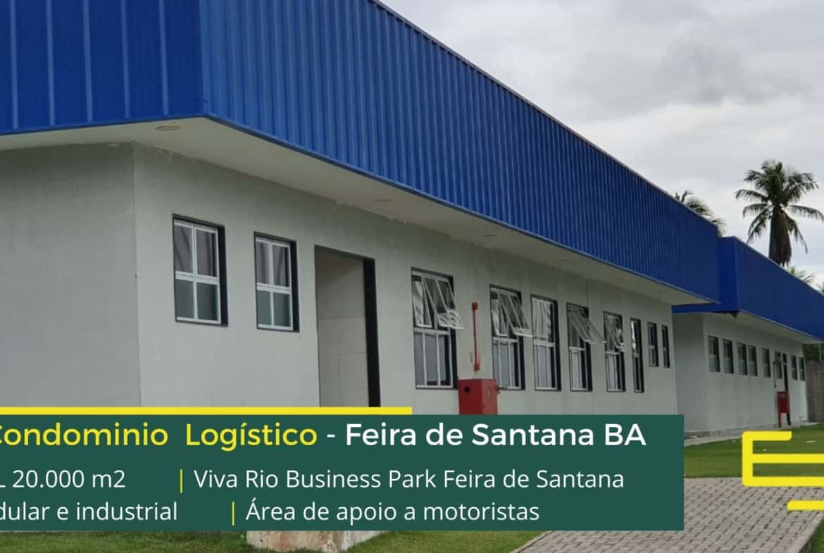 Galpão para alugar em Feira de Santana BA em condomínio logístico localizado estrategicamente na BR 324 e com fácil acesso a Rodovia 116, o condomínio Viva Rio Business Park possui área total construída de 48.063 m² e que sobretudo, permite locação modular e flexível de galpões a partir de 3.303 m², sobretudo destinados a operação de transporte e distribuição.