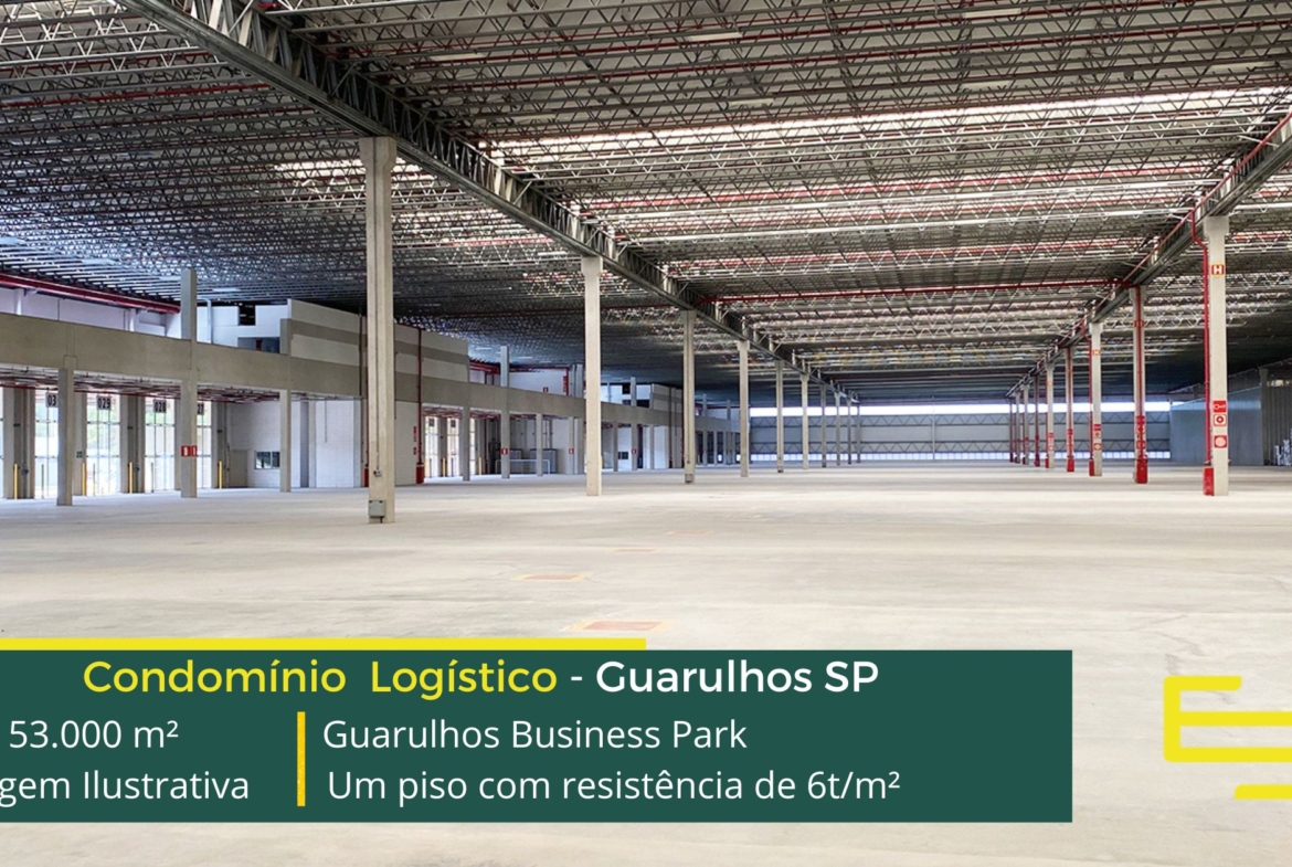 Galpão para alugar em Guarulhos SP em condomínio com localização estratégica, com fácil acesso à Rodovia Ayrton Senna e está localizado a 35 km da cidade de São Paulo. O condomínio está ao lado do retorno da Av. Jacu-Pêssego, que interliga o Aeroporto de Guarulhos e o Porto de Santos . O Condomínio Guarulhos Business Park, é composto por 15 módulos e sobretudo, permite aluguel de galpões em Guarulhos a partir de 3.300 m2 e além disso, possui área total construída de 53.000 m².