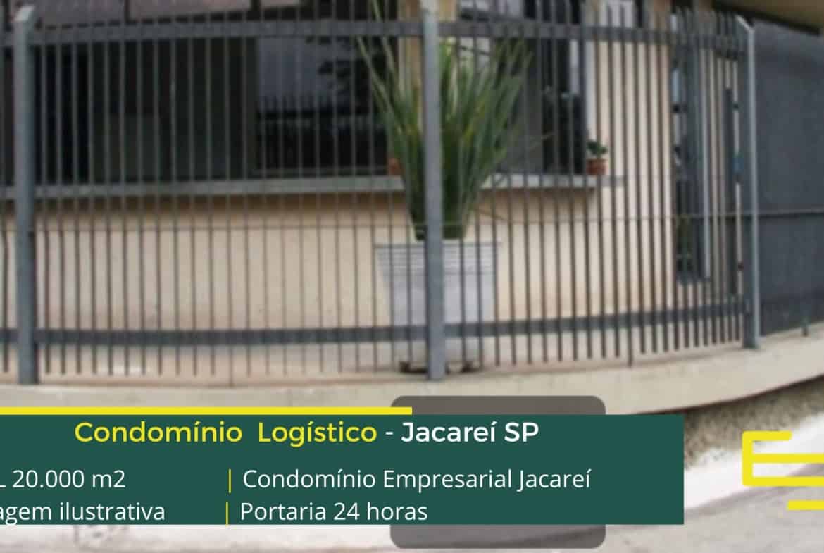 Galpão em Jacareí. Este condomínio de galpões é um dos principais empreendimento logísticos da região de Jacareí e possui portaria 24 horas e segurança 24 horas com controle informatizado de acesso, CFTV (Circuito fechado de TV) além disso, perímetro completamente cercado.